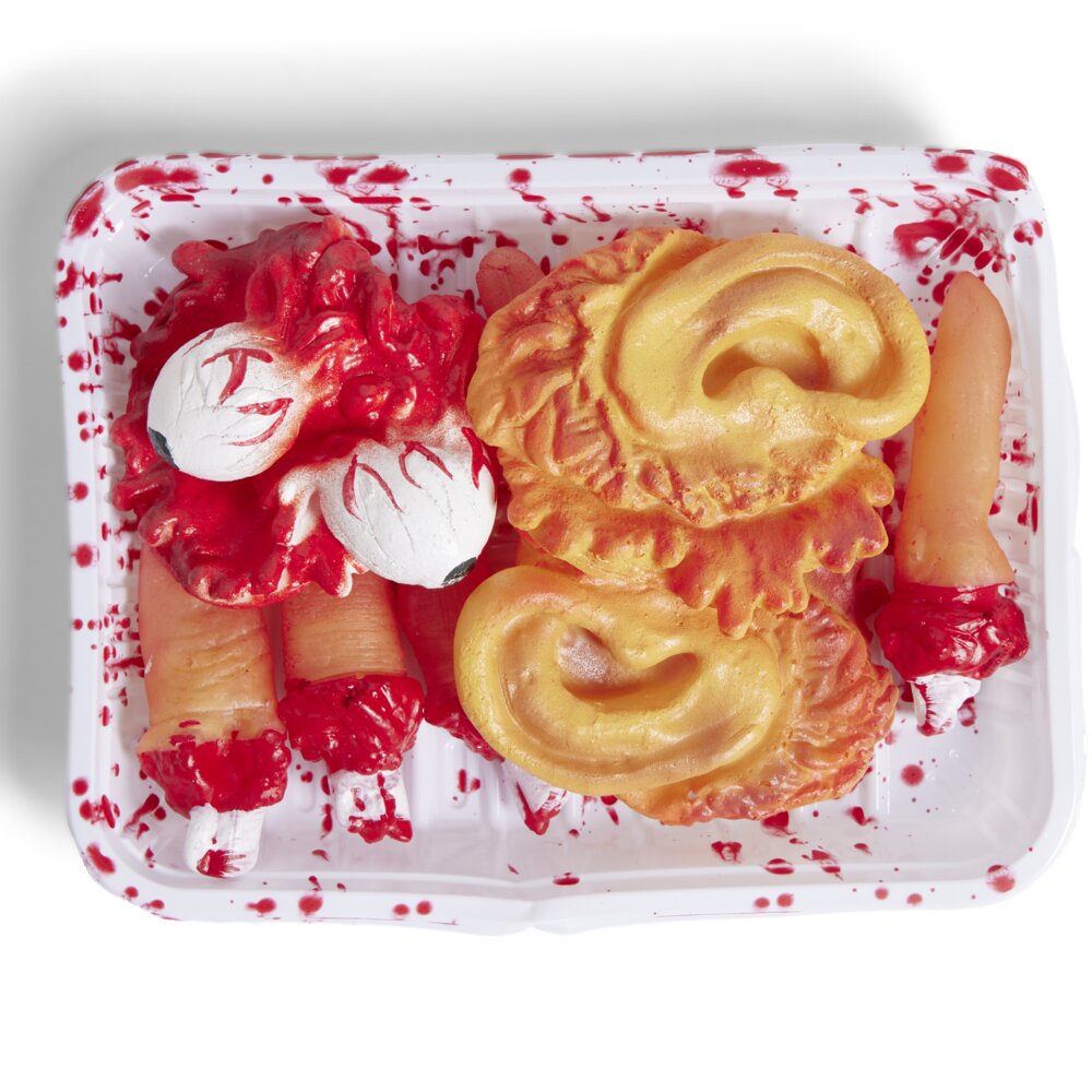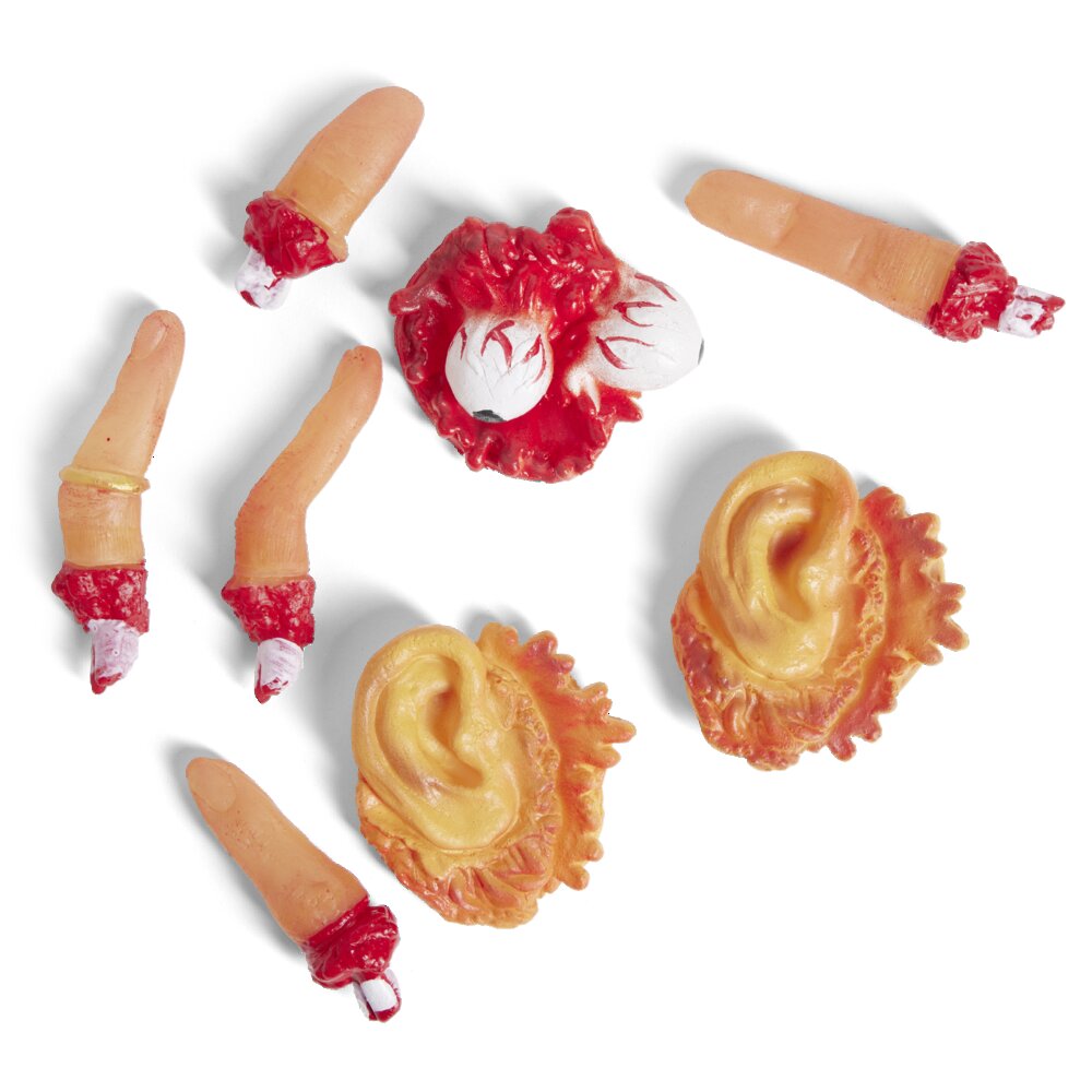 Ky set gjymtyrësh dhe organesh të rreme (vesh, sy, gisht) është ideal për t'i shtuar një prekje makabre dekorimit tuaj të Halloween-it.
