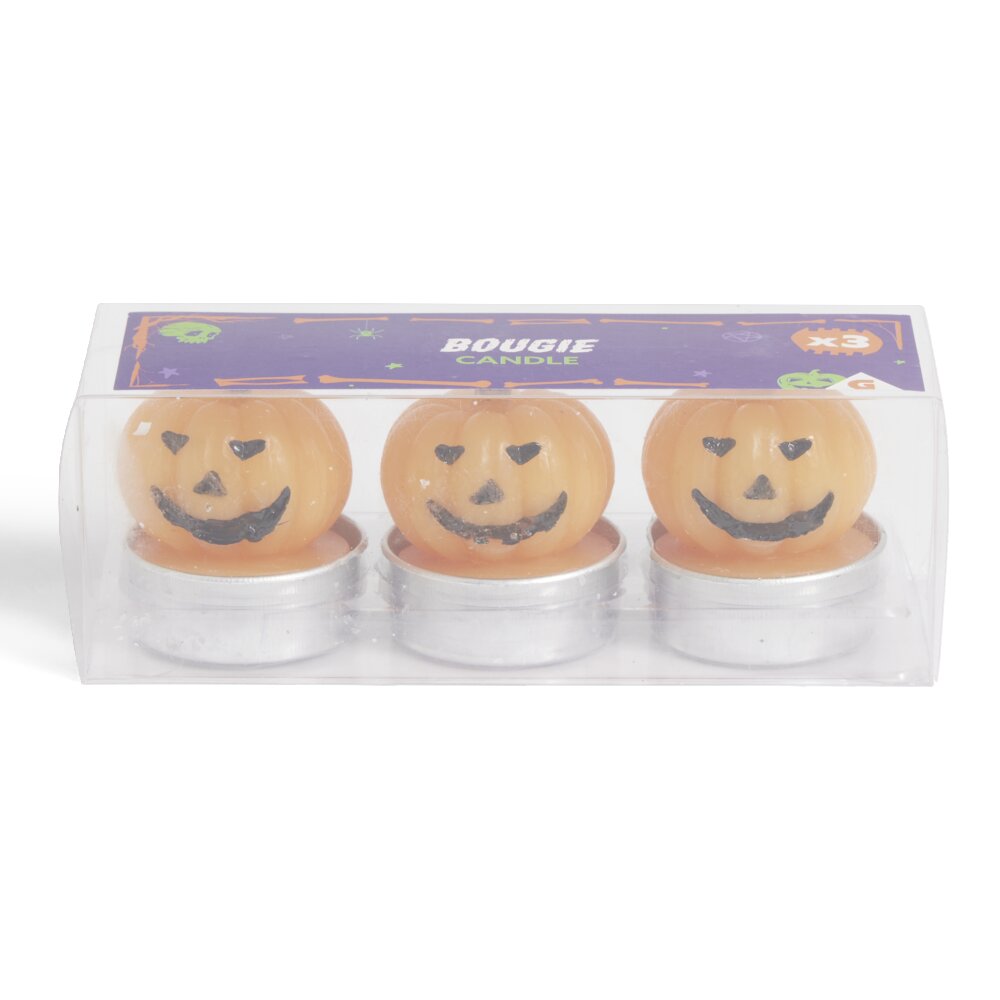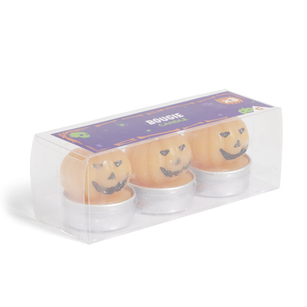 Shtoni një prekje festive dekorit tuaj të Halloween-it me këtë set prej 3 qirinjsh në formë kungulli.