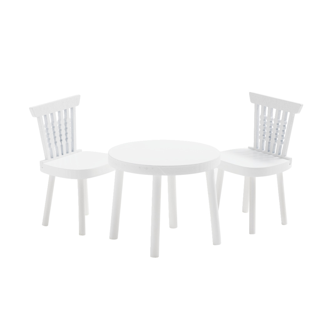 Krijo një cep magjik për elfët e tu djallëzorë me këtë tavolinë të bardhë prej druri dhe dy karrige të njëjta. Perfekte për të krijuar shtëpinë e ëndrrave të tyre!