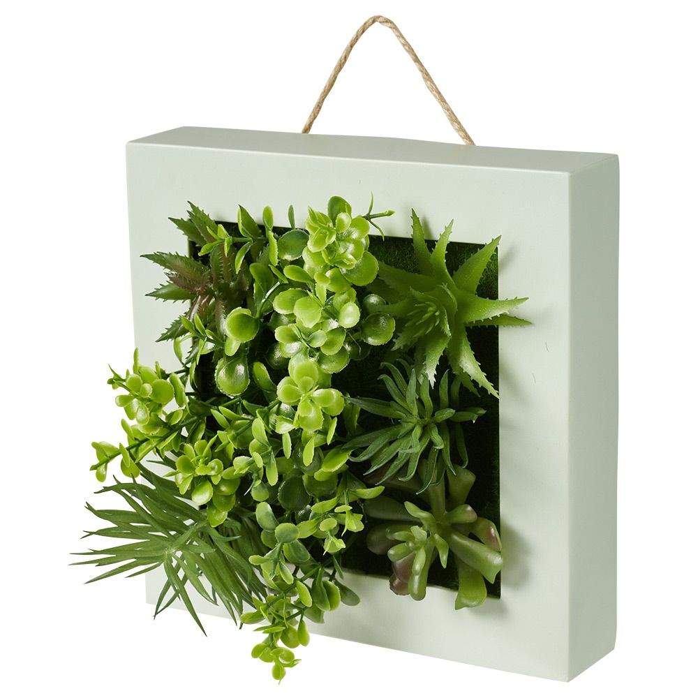 Estetike dhe pa nevojë për mirëmbajtje, kjo kornizë bime e bërë nga bimë artificiale do të jetë perfekte për t'i shtuar një prekje natyre dekorimit të murit tuaj.