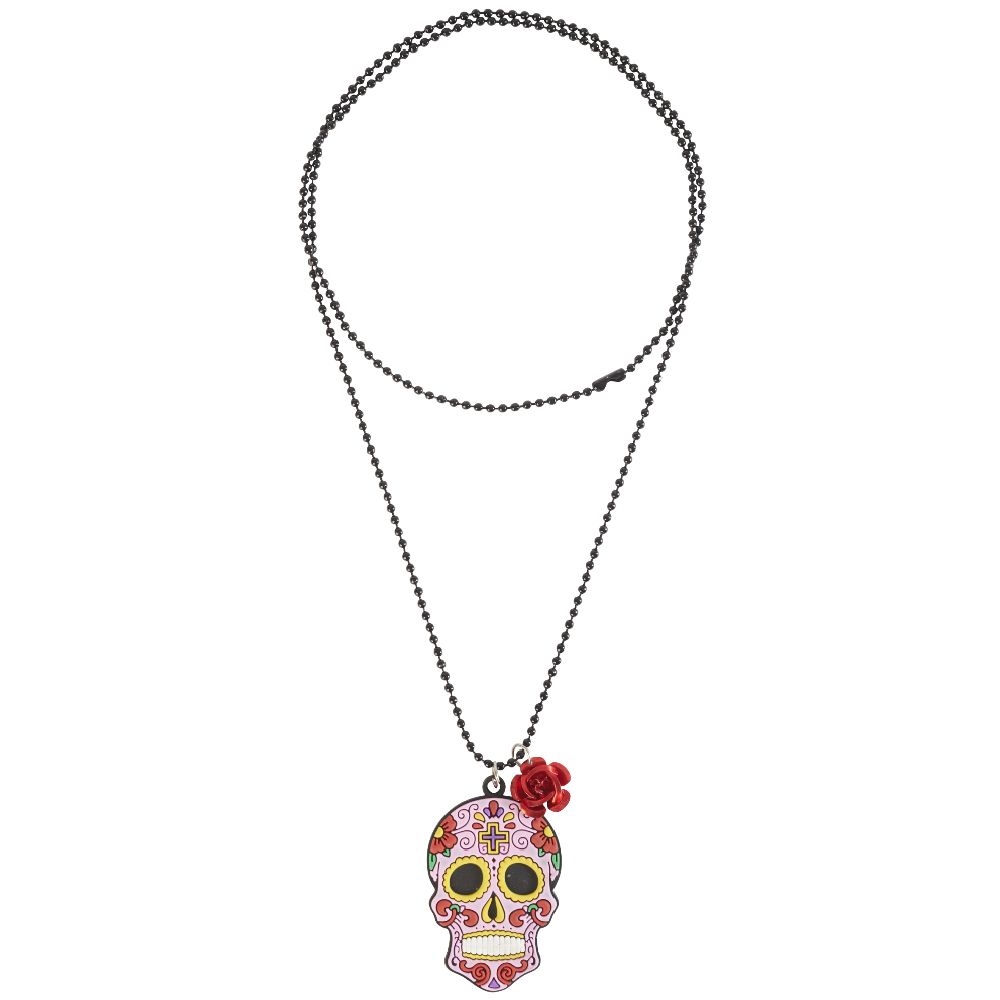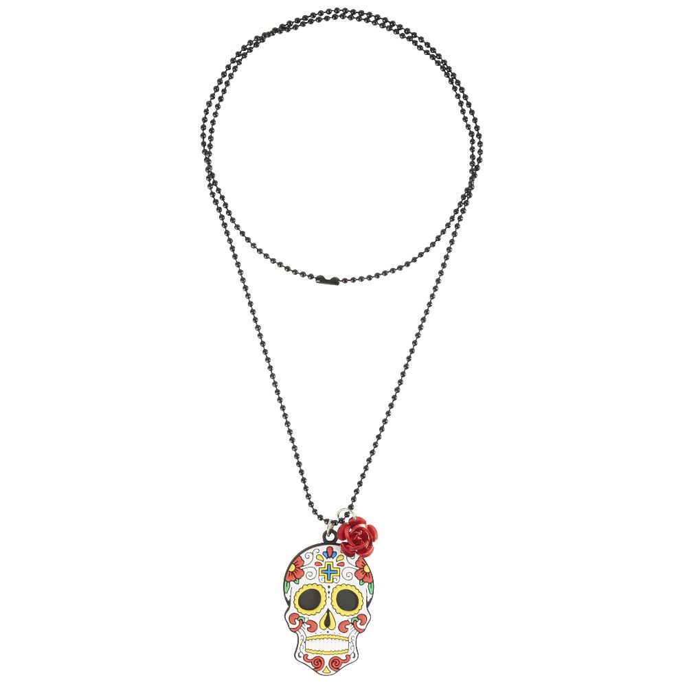 Një set bizhuterish që përmban një gjerdan me kafkë dhe dy vathë. Perfekt për të kompletuar një kostum Halloween-i.