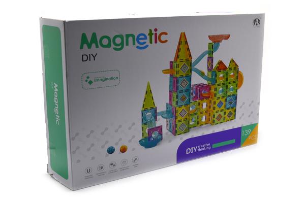 Set me 139 blloqe magnetike me ngjyra të gjalla dhe forma të ndryshme.