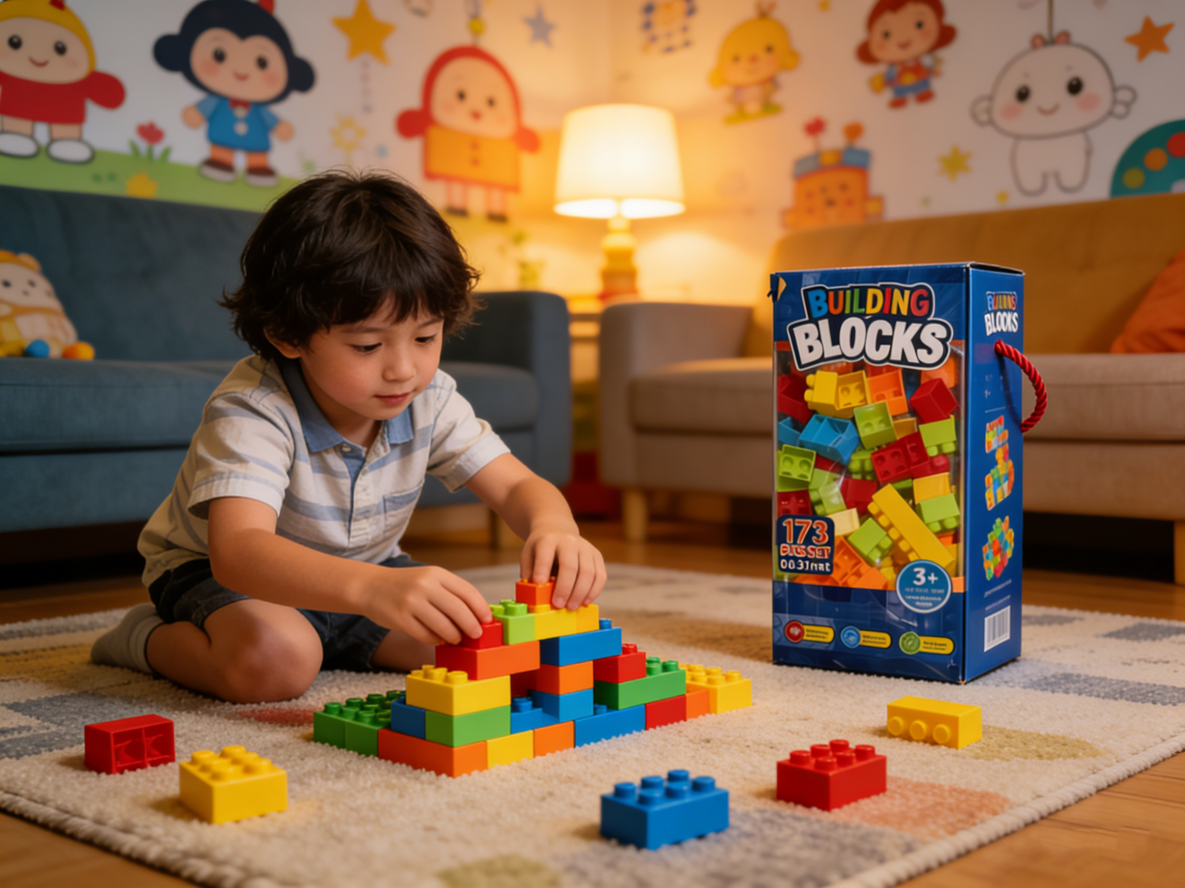 Blloqe Ndërtimi nga PVC – 173 Copë janë set kreativ dhe edukativ për fëmijë. Me 173 pjesë të ndryshme, ky set ndihmon në zhvillimin e imagjinatës, kreativitetit dhe aftësive motorike duke lejuar ndërtimin e formave dhe strukturave të ndryshme. Të punuara nga PVC cilësor dhe i sigurt, blloqet janë të qëndrueshme dhe të përshtatshme për lojë të përditshme.