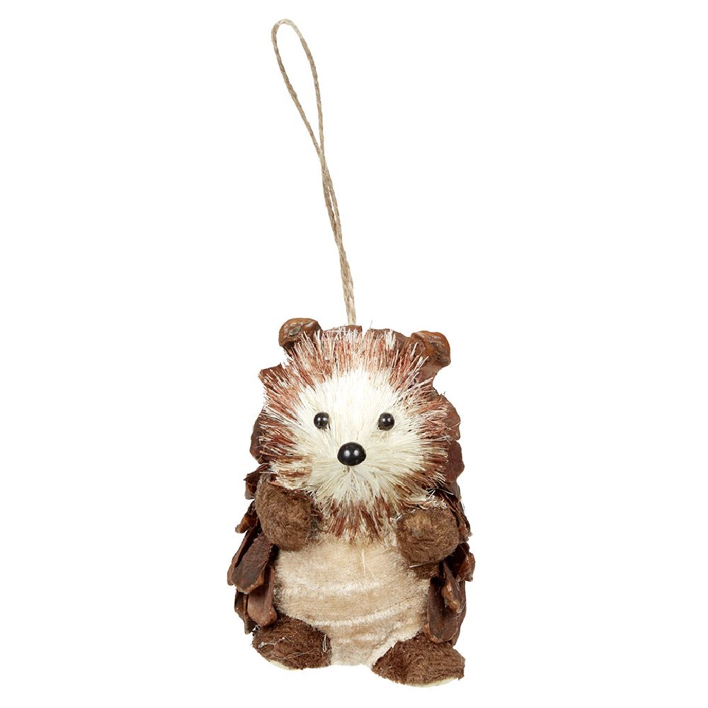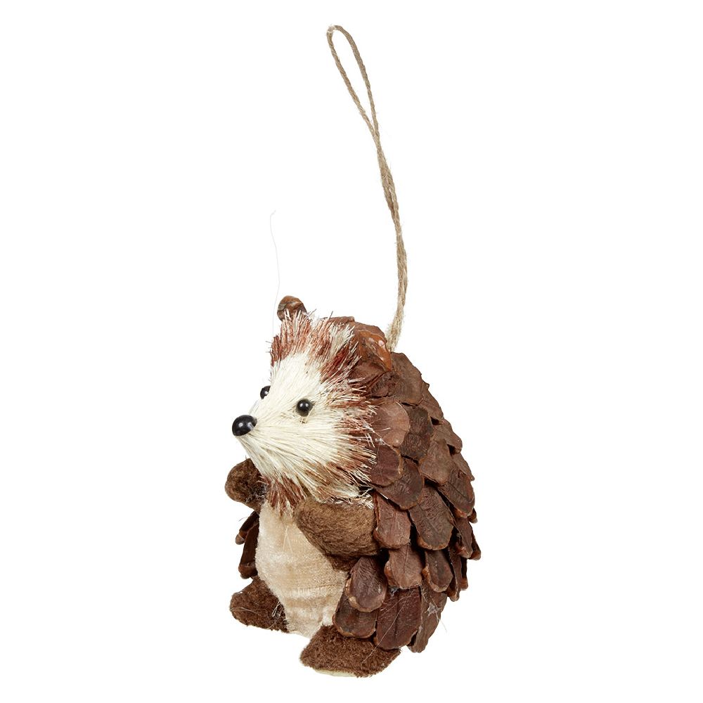 Dekorim Krishtlindjesh në formë iriqi i bërë nga druri dhe boçe pishe, për ta varur në pemën tuaj për një prekje dekorative natyrale.
