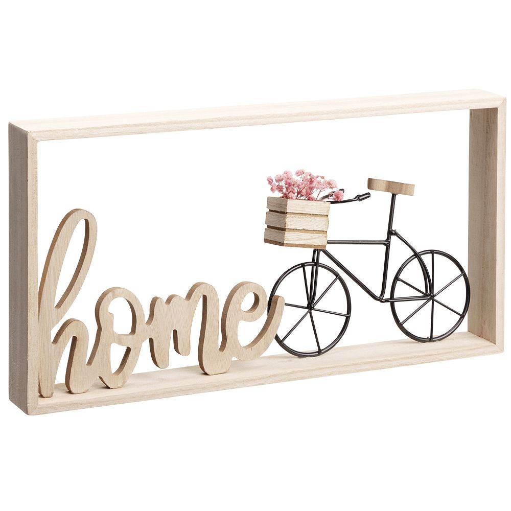 Kjo kornizë dekorative biçiklete me fjalën HOME në grimca druri do të jetë një dekor origjinal dhe 100% komod për ambientin tuaj të brendshëm.