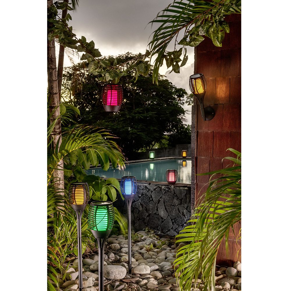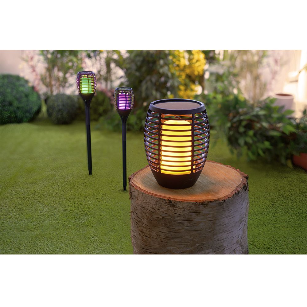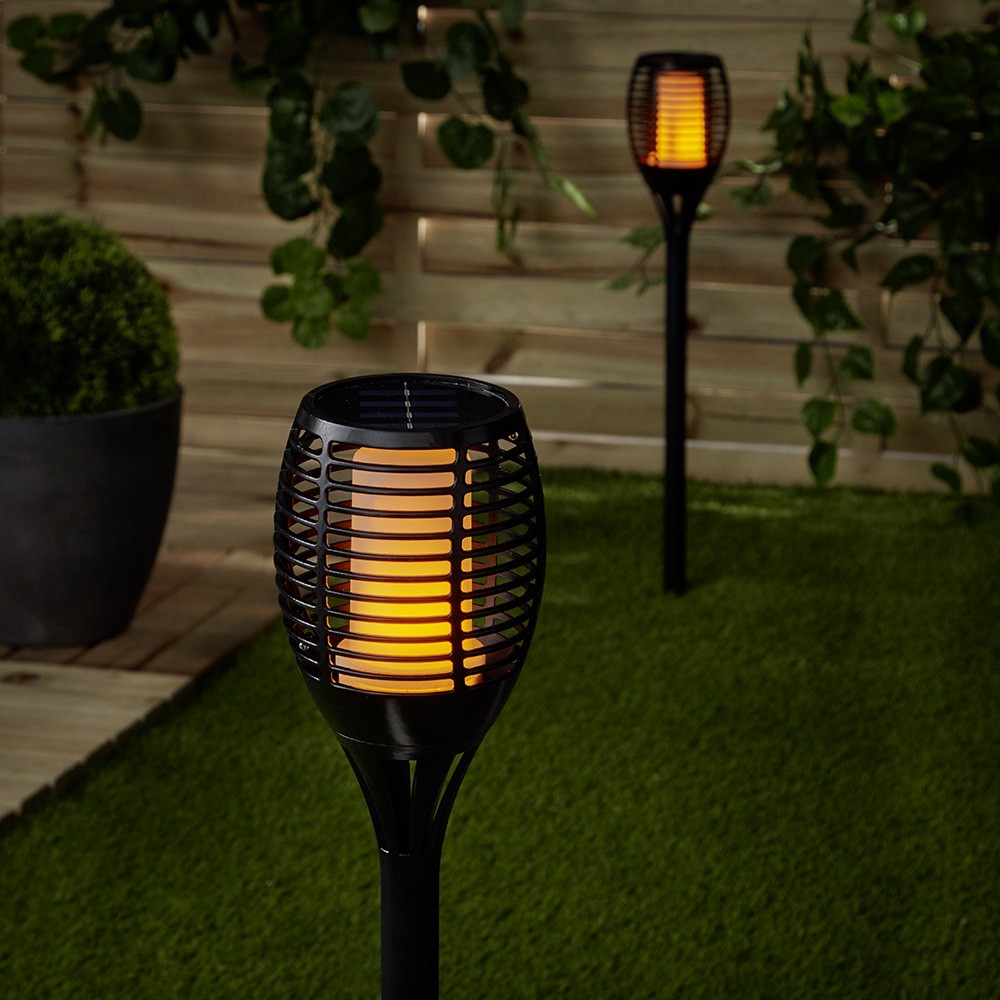 Për mbrëmje miqësore në natyrë, ky elektrik dore diellore e zezë me LED me flakë imituese do të jetë ideale.
