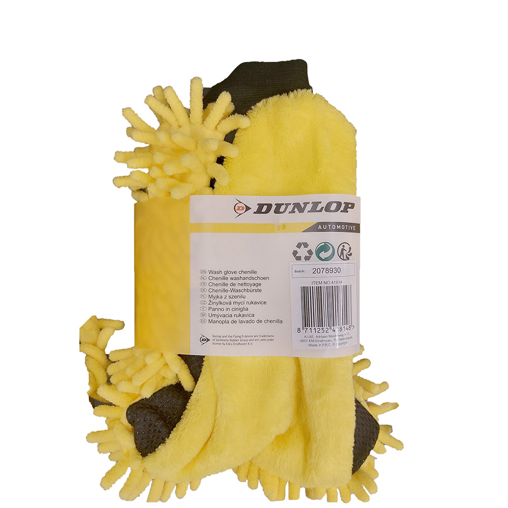 Sfungjer Dunlop i verdhë me dy anë, me rrjetë në njërën anë dhe mikrofibër në tjetrën prej shenili, ideal për larjen e makinave.