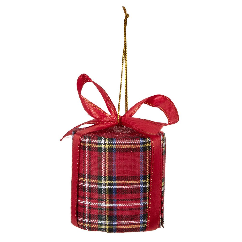 Dhuratë Krishtlindjesh me tartan të kuq dhe jeshil në 2 dizajne të ndryshme për t'i varur pemës suaj një pamje vintage.