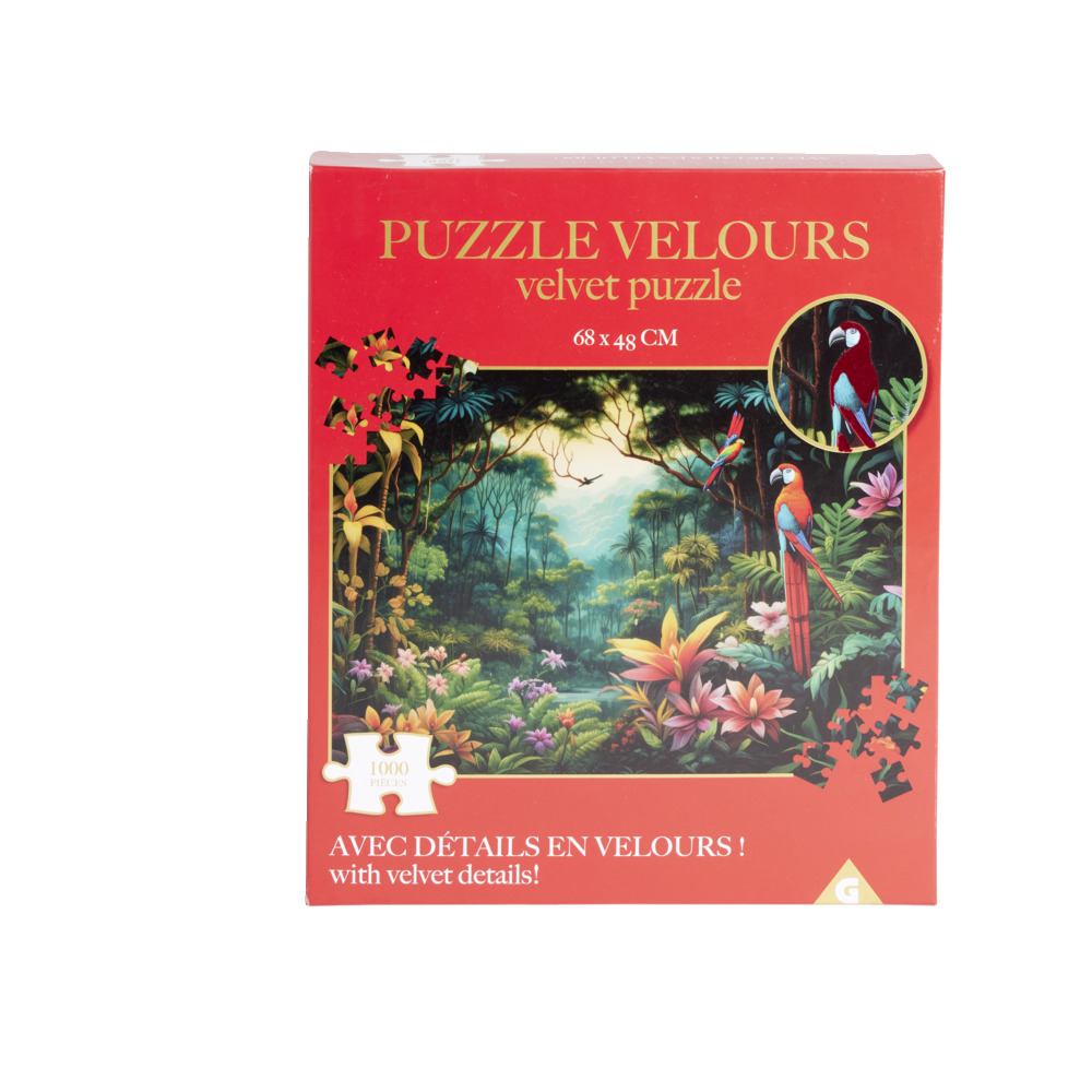 Me një peizazh tropikal xhungle me detaje kadifeje, ky enigmë ofron një përvojë unike vizuale dhe prekëse.