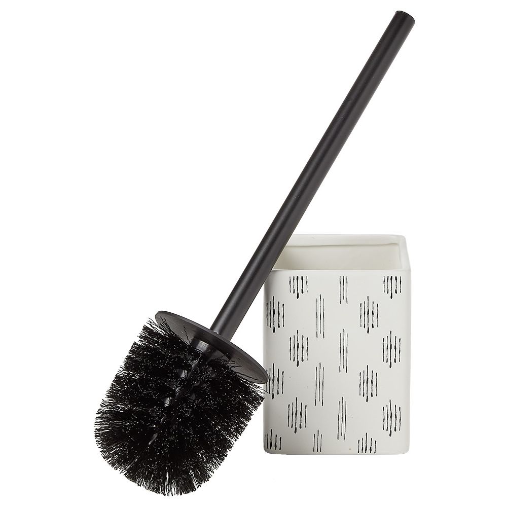 Kjo furçë tualeti e zezë me një bazë katrore prej guri me modele vijash të zeza në një sfond të bardhë do t'i shtojë një prekje origjinale dekorative banjove tuaja, si dhe do t'i mbajë ato të pastra.
