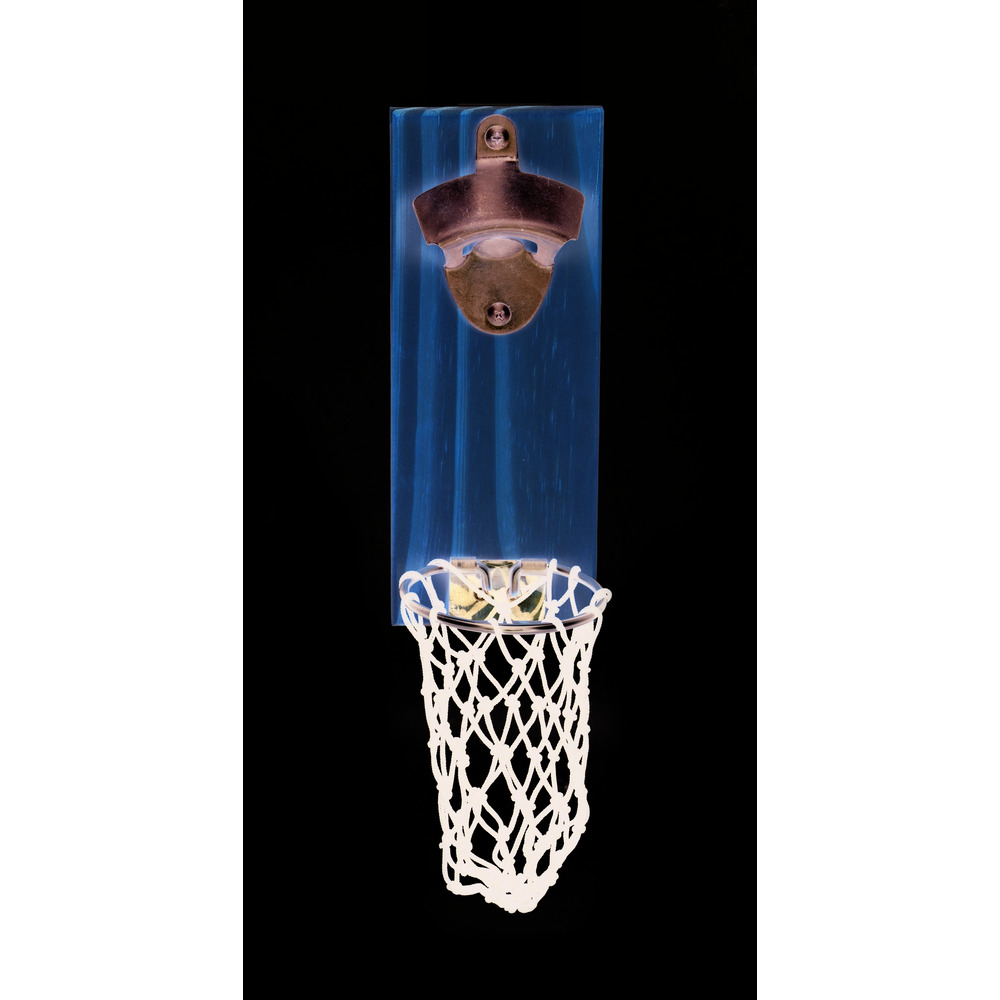 Shtoni një prekje sportive dhe praktike hapësirës suaj me këtë hapëse shishesh prej druri të montuar në mur në stilin e koshit të basketbollit.