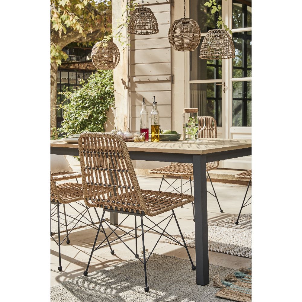 Plotësoni setin tuaj Bali me karrigen e ngrënies prej çeliku të zi dhe ndenjësen prej rrëshire.