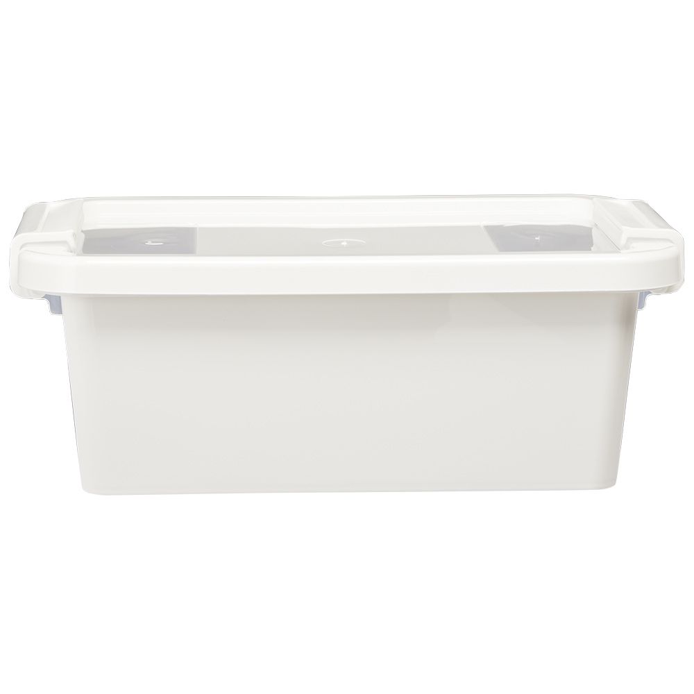 Kuti plastike e bardhë për ruajtje me kapak dhe mure pjesërisht transparente që lejojnë që përmbajtja të shihet. Hapet dhe mbyllet lehtë me 2 kapëse.