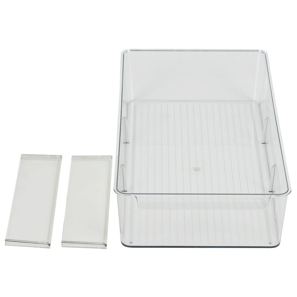 Kovë ruajtjeje prej plastike transparente me 2 ndarëse të lëvizshme.