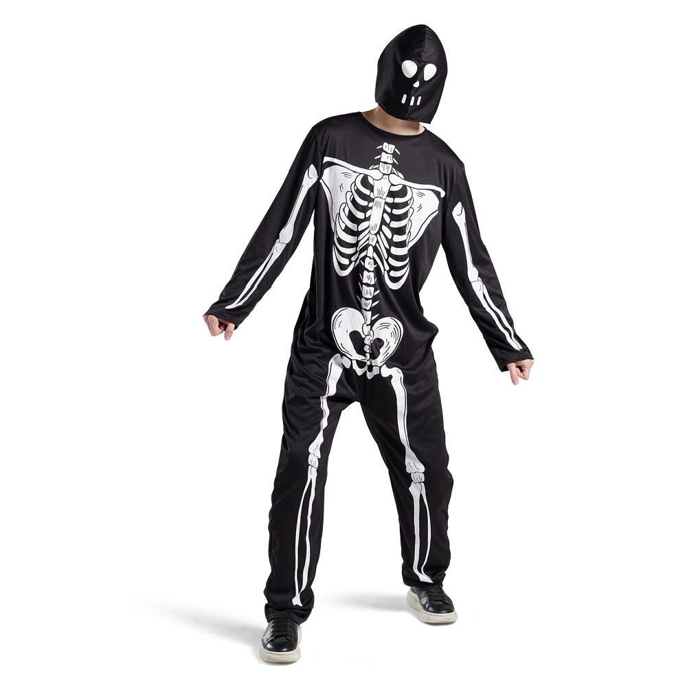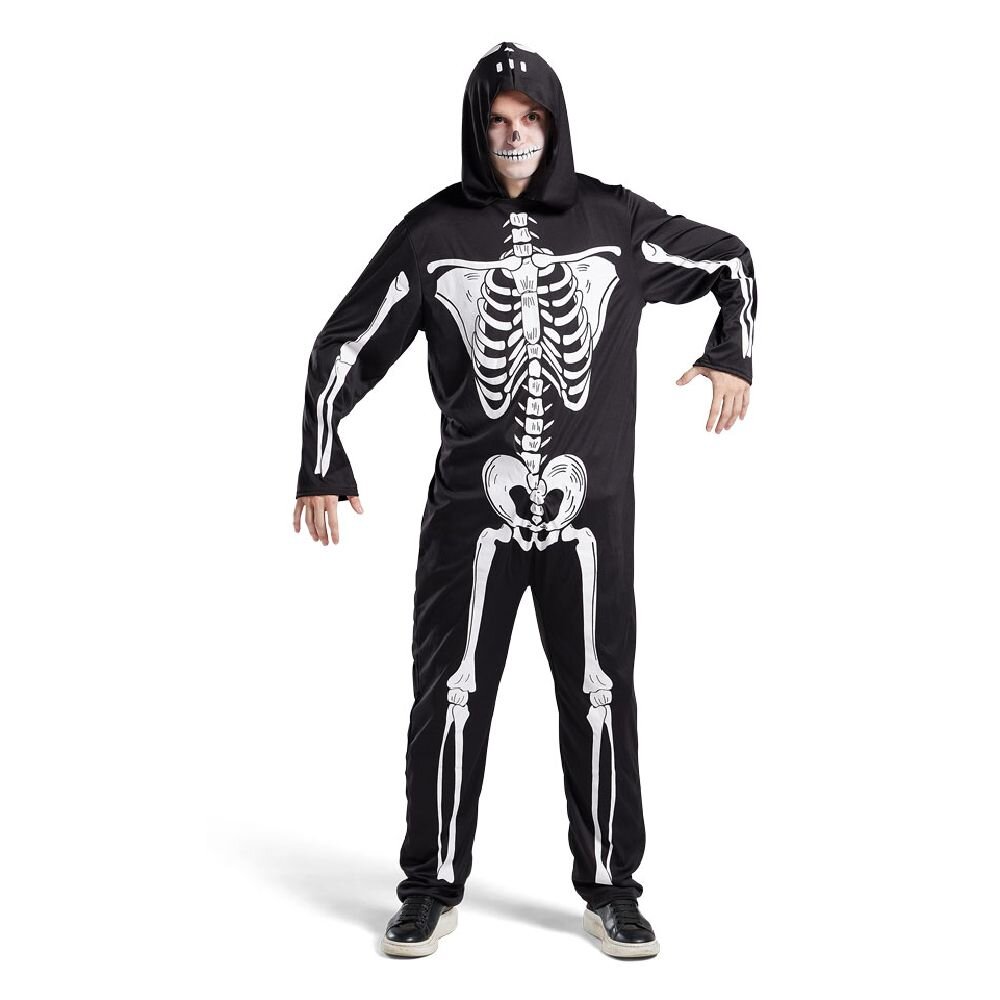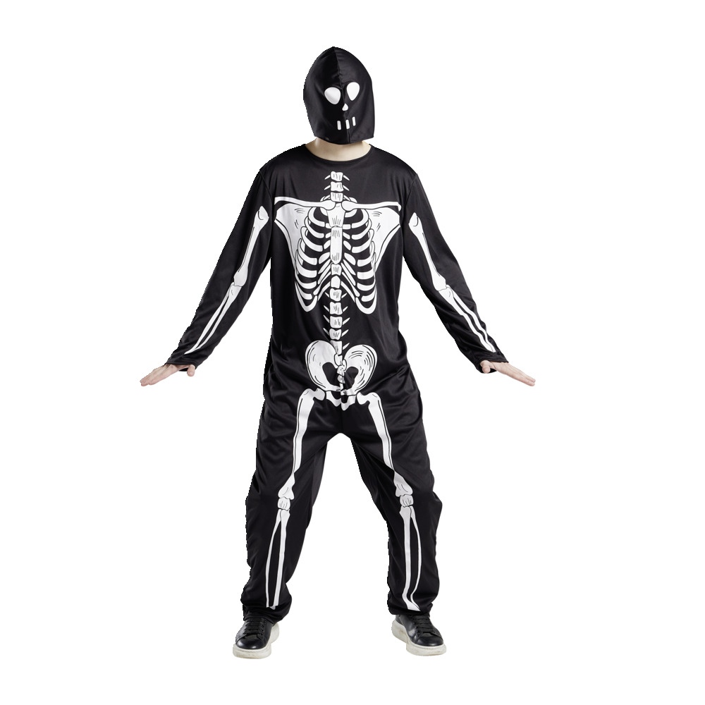 I paraqitur me një kostum të zi të zbukuruar me një model të detajuar skeleti të bardhë, ky kostum siguron një pamje të frikshme dhe realiste.