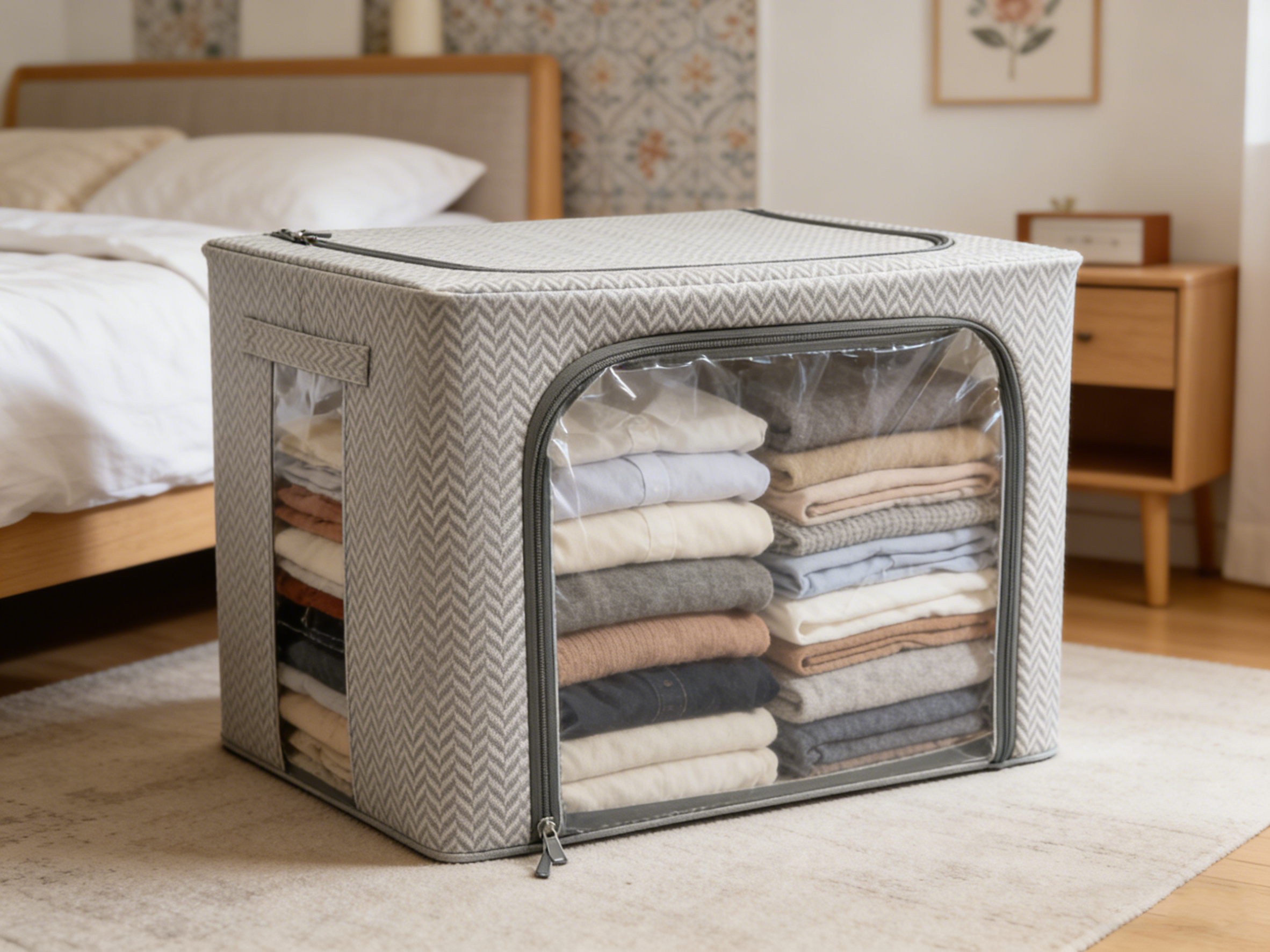 Kuti magazinimi nga tekstili 66L është zgjidhje ideale për organizimin e sendeve të ndryshme në shtëpi. Me kapacitet 66 litra, ajo ofron hapësirë të bollshme për ruajtjen e rrobave, batanijeve apo aksesorëve të ndryshëm. E punuar nga material tekstili cilësor, është e lehtë, e palosshme dhe praktike për përdorim në dollapë, rafte apo hapësira të tjera.