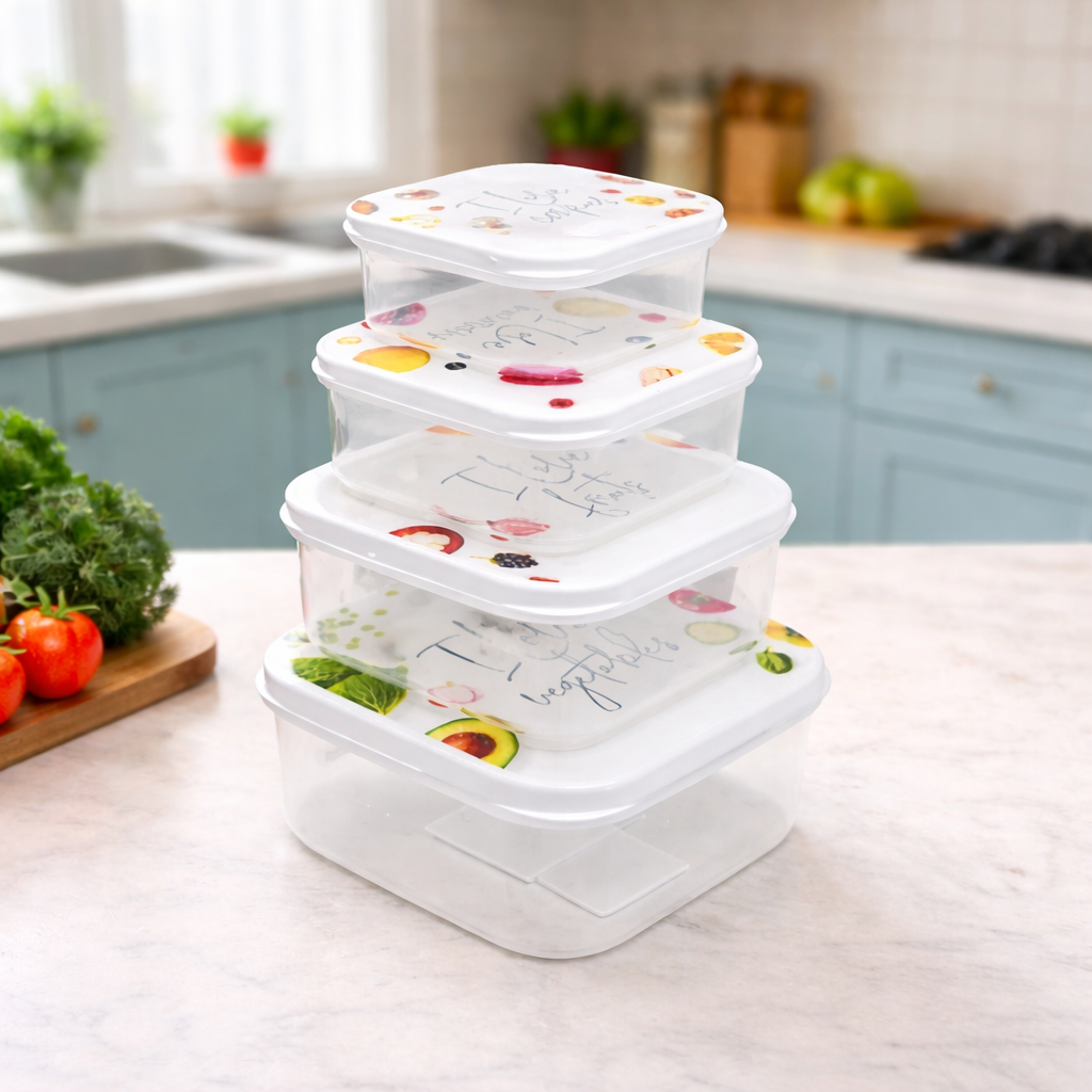 Set 3 kuti ushqimi nga plastika 27x20x8 cm është zgjidhje praktike për ruajtjen dhe organizimin e ushqimit. Me dimensione 27x20x8 cm, këto kuti janë të përshtatshme për porcione të ndryshme dhe për transport të lehtë. Të punuara nga plastikë cilësore, ato ndihmojnë në ruajtjen e freskisë dhe mbajtjen e ushqimit në mënyrë të rregullt dhe higjienike.