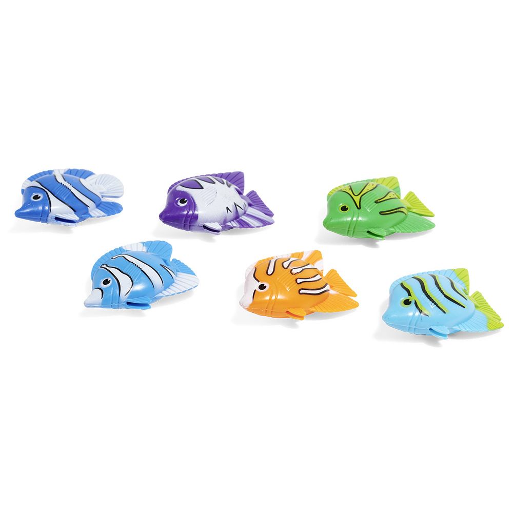 Fëmijët mund të argëtohen duke peshkuar me këtë set prej 6 peshqish shumëngjyrësh me një rrjetë uljeje të përfshirë.