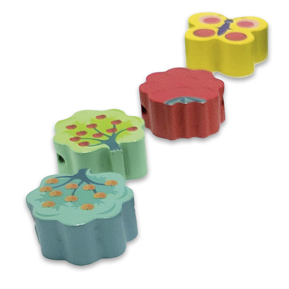Kutia përfshin 16 rruaza XL që përfaqësojnë kafshë (buf, flutur, mollëkuqe, iriq, etj.) dhe elementë pylli (pemë frutore, gjethe, lule, etj.), si dhe një kordon mbi të cilin mund të vihen fijet në rruaza.