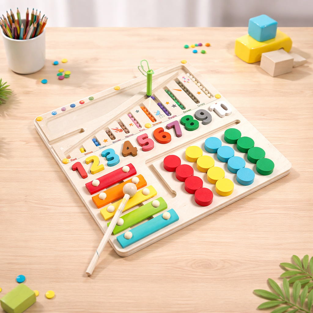 Lodër edukative nga druri me tinguj është lodër interaktive dhe mësimore për fëmijë. Ajo ndihmon në zhvillimin e shqisës së dëgjimit, koordinimit dhe aftësive motorike, duke e bërë mësimin më argëtues. E punuar nga dru cilësor dhe i sigurt, është e qëndrueshme dhe e përshtatshme për përdorim të përditshëm.