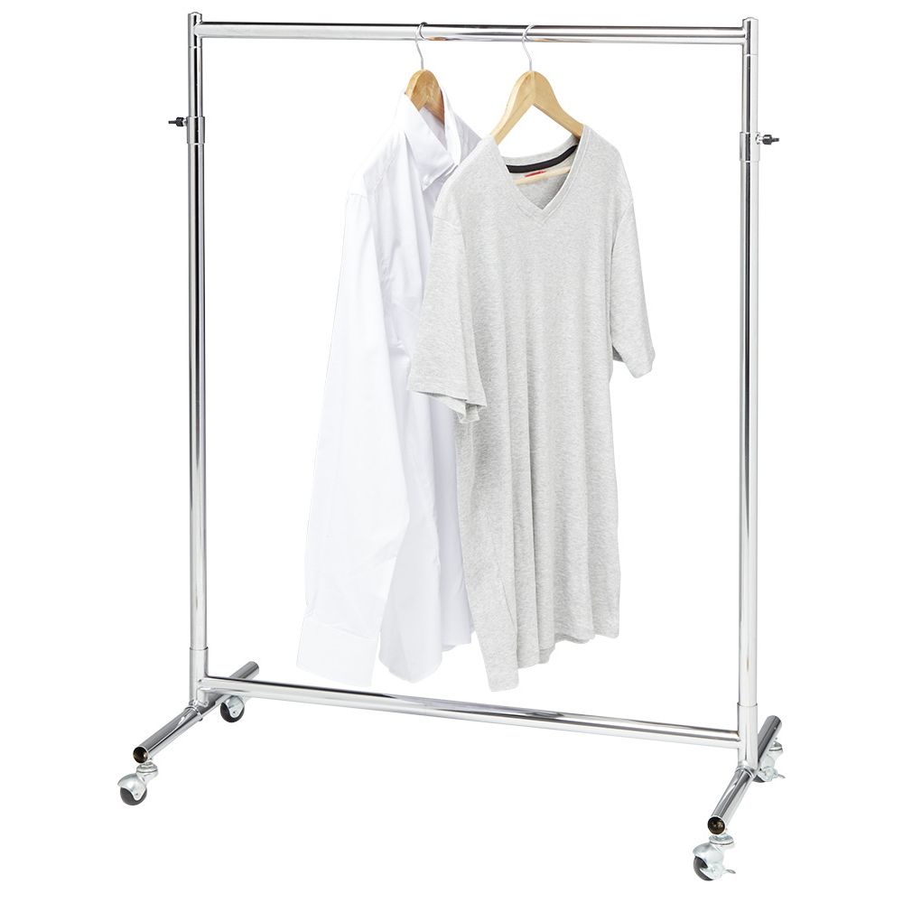 Raft rrobash i zgjerueshëm me një lartësi nga 117.5 deri në 172 cm. I pajisur me 4 rrota, do të jetë i lehtë për t'u lëvizur edhe me rroba të varura.