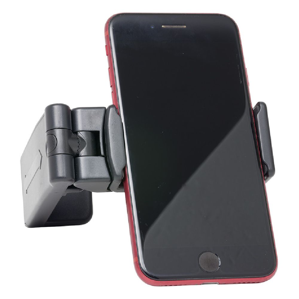Kompakte dhe praktike, kjo mbajtëse telefoni mund të rrotullohet deri në 360° dhe është shumëfunksionale falë opsioneve të shumta të montimit: në kokën e krevatit, në karrocën e valixhes, në buzë të tavolinës, në tabletin tuaj të udhëtimit, në një raft ose thjesht e vendosur në një sipërfaqe të sheshtë.