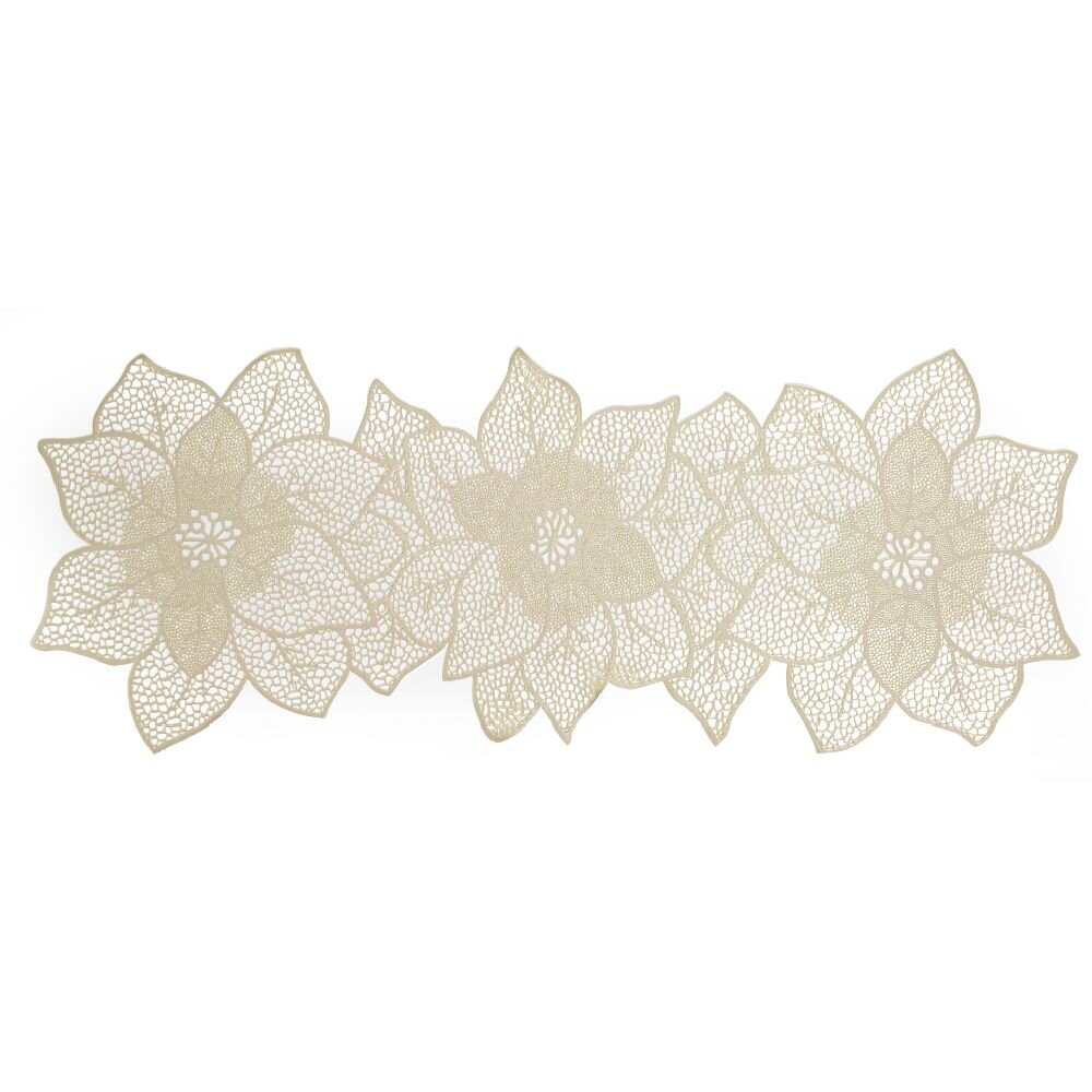 Sillni pak festë në tryezën tuaj të Krishtlindjeve me këtë vrapues tavoline me punime të hapura në ngjyrë të artë.