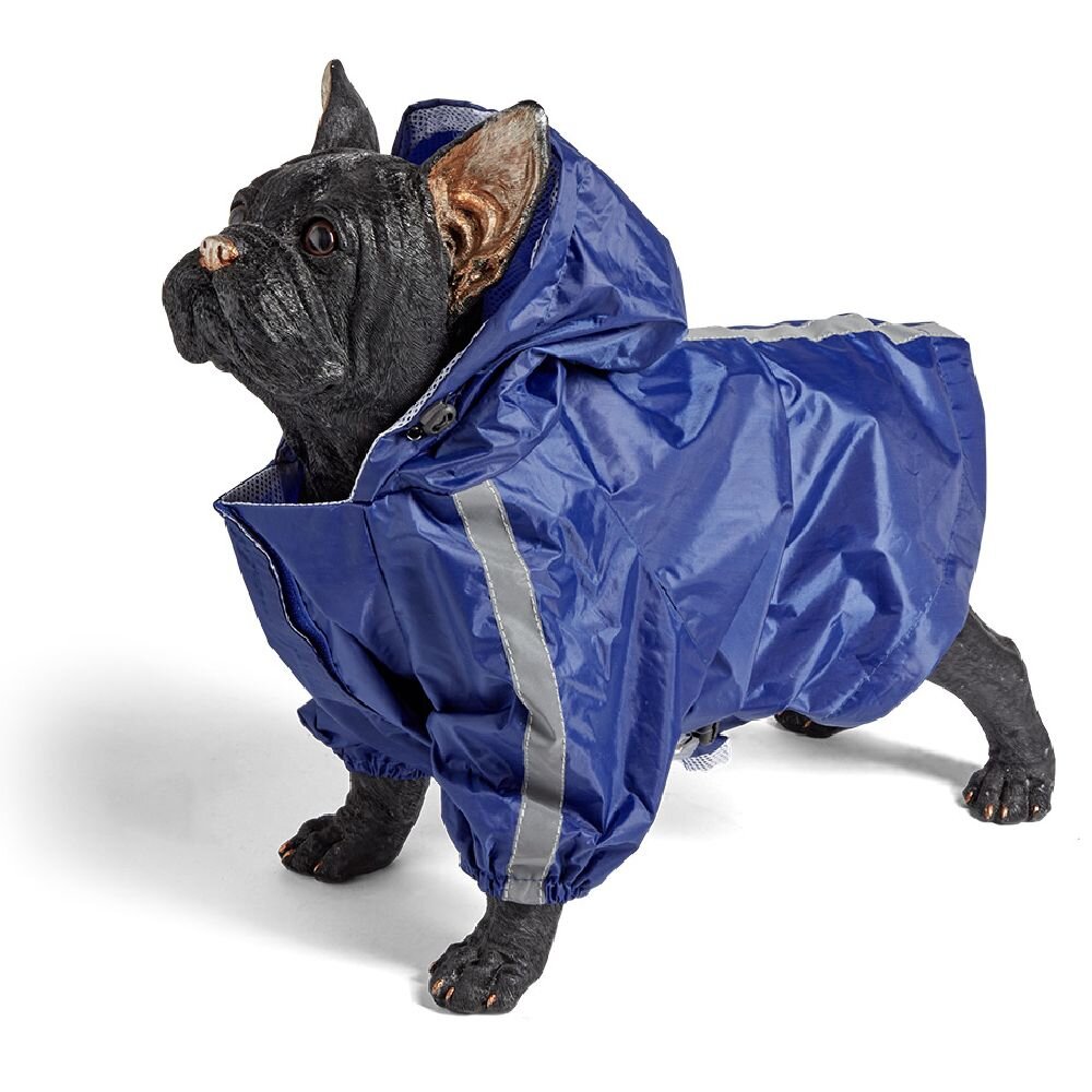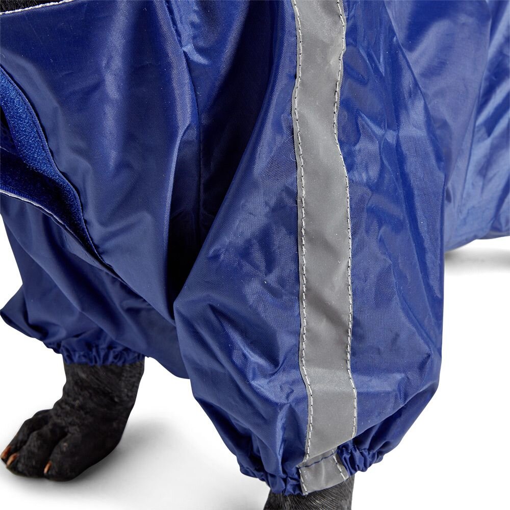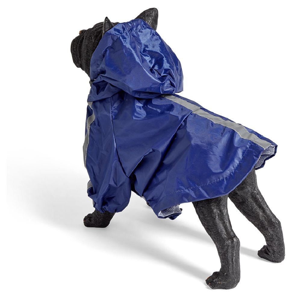 Kjo xhaketë blu me kapuç e papërshkueshme nga uji do ta izolojë qenin tuaj nga shiu kur të dilni në mot të keq.