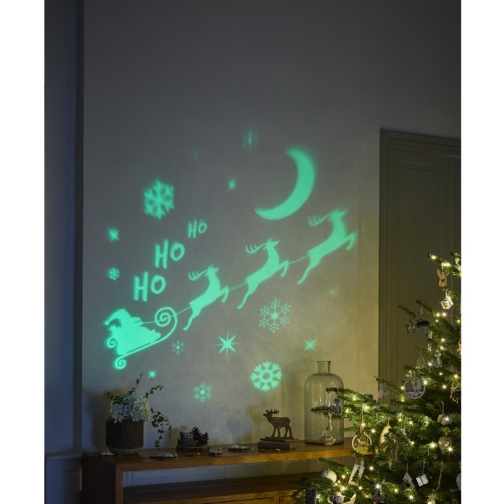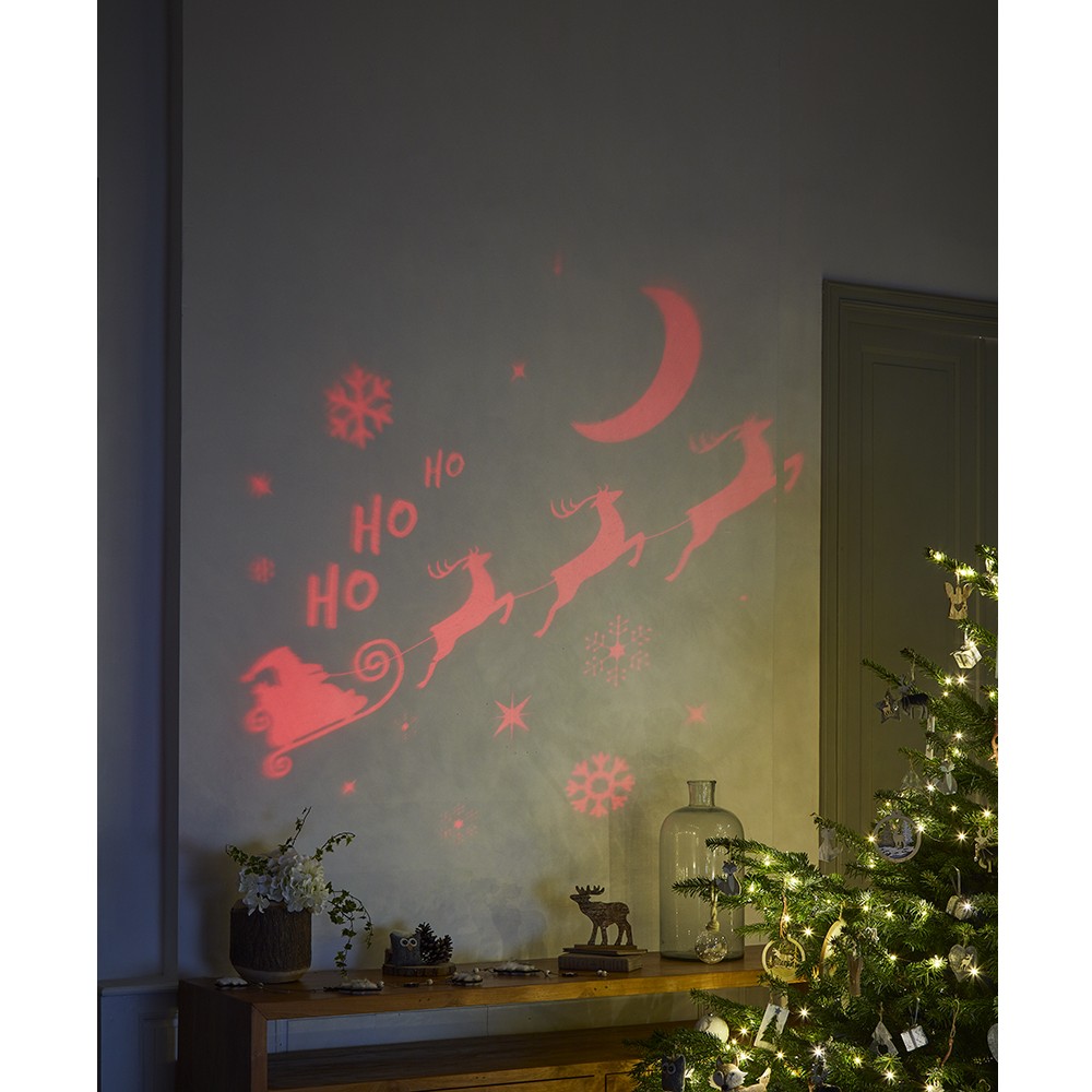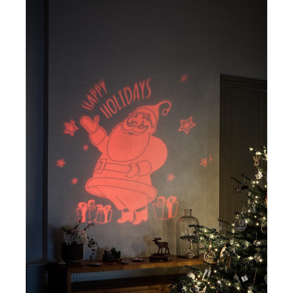 I projektuar posaçërisht për Krishtlindje, shfaq imazhe të animuara dhe funksionon me 3 bateri AA (nuk përfshihen).