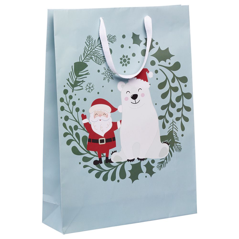 Çantë dhuratash për Krishtlindje me madhësi mesatare me temë natyre.
