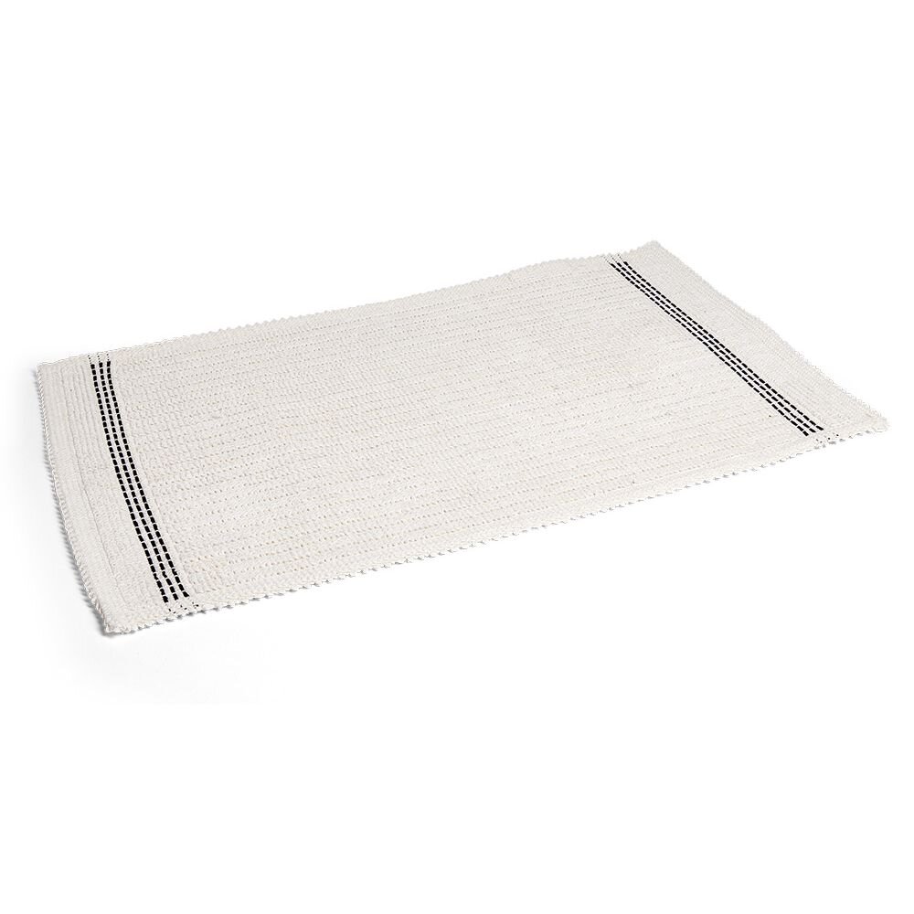 Ky dyshek banjoje 100% pambuk i bardhë i endur me bordura të zeza është ideal për të dalë nga dushi dhe duke u ndjerë i thatë.