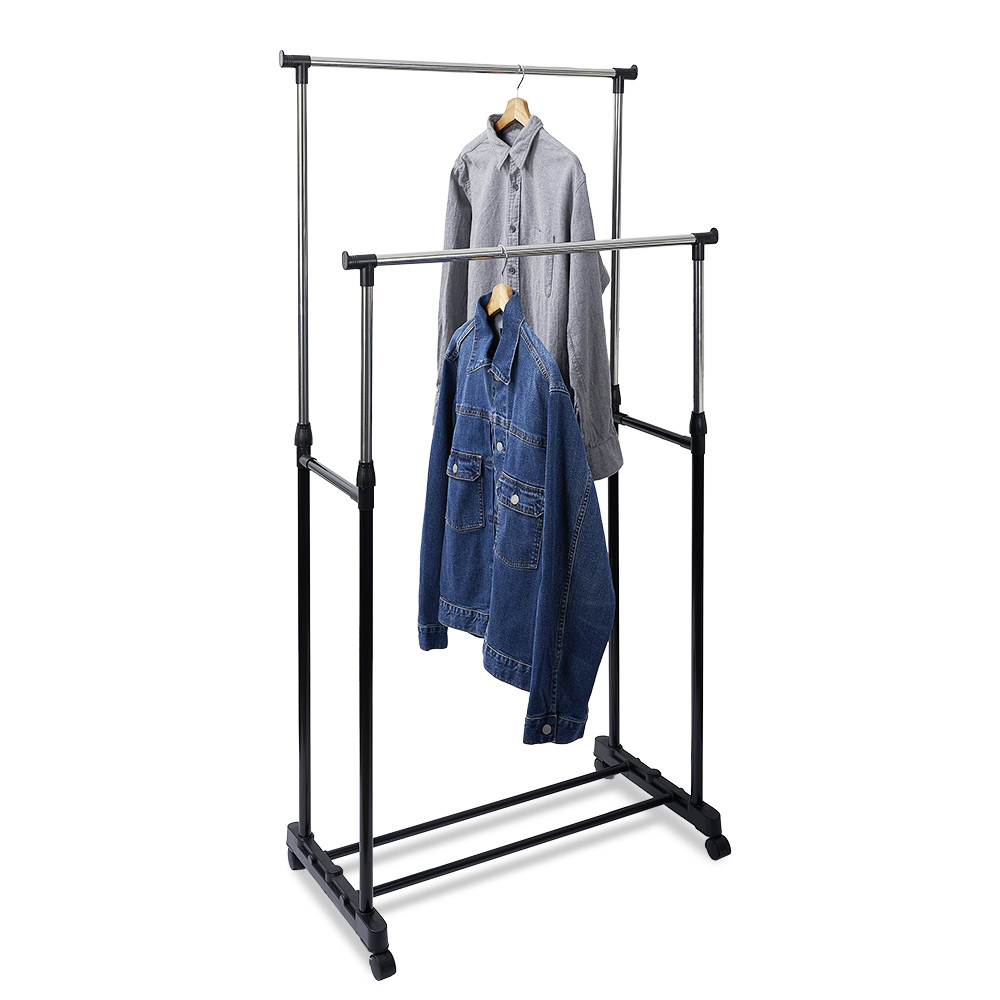 I lehtë për t’u lëvizur falë 4 rrotave të tij, ky raft i dyfishtë është i rregullueshëm në lartësi nga 95 në 165 cm duke ju lejuar ta rregulloni atë sipas nevojave tuaja.