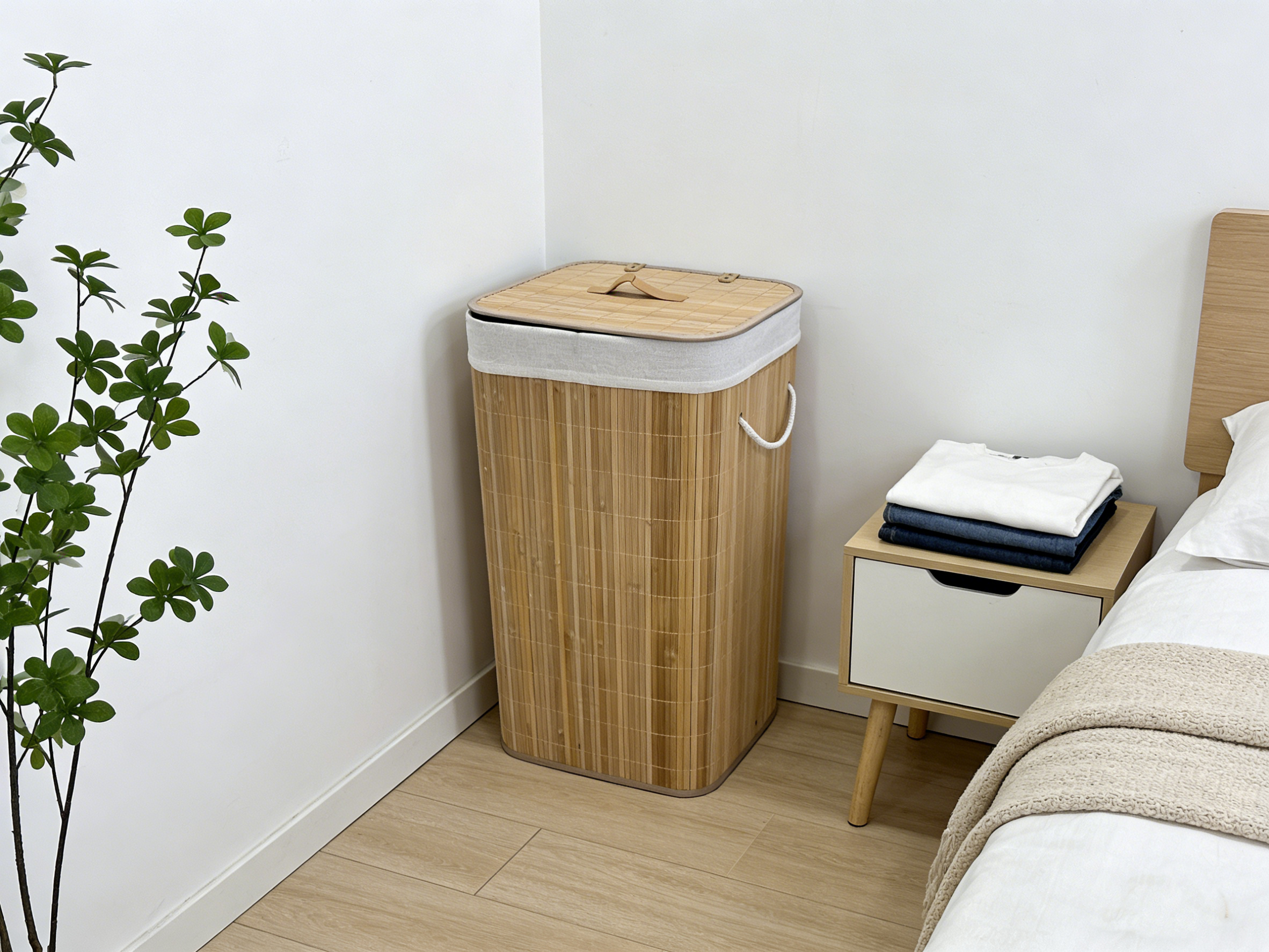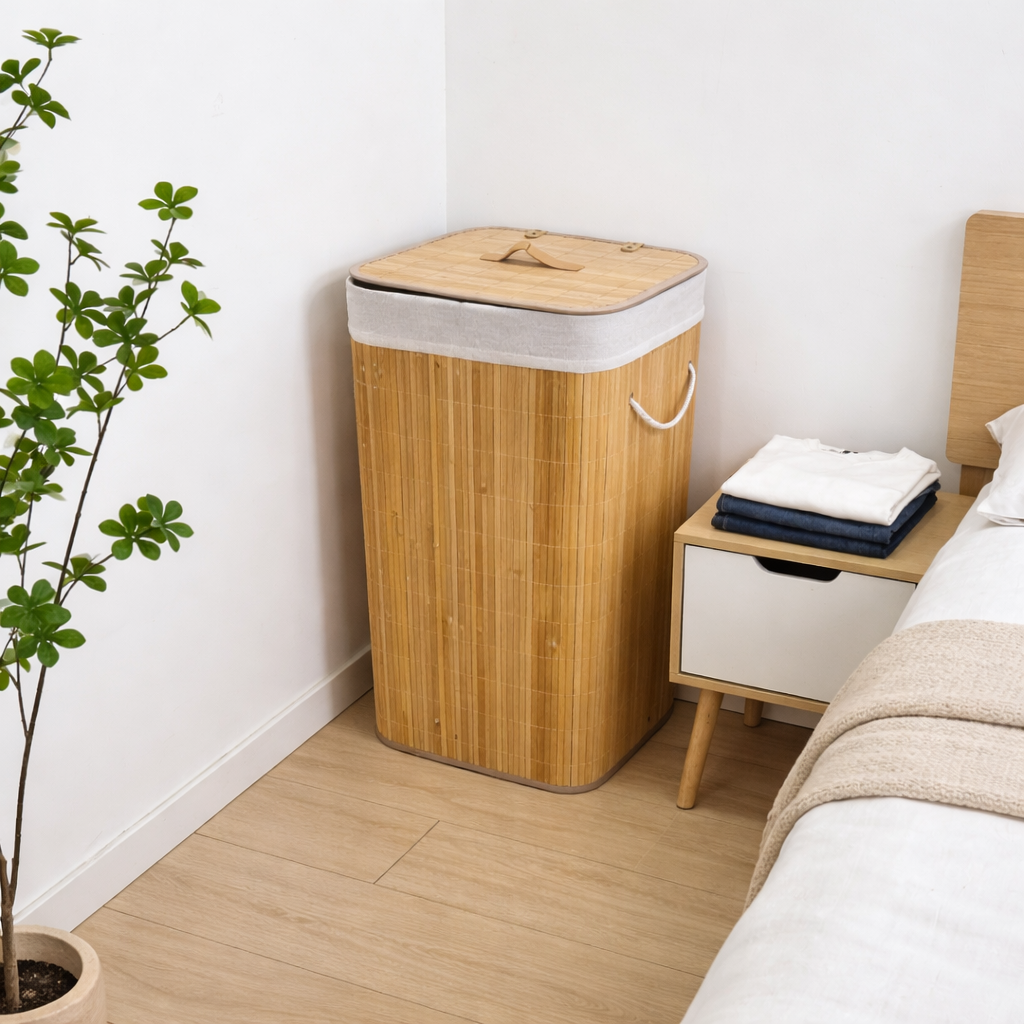 Shportë për rroba nga bambu 40x30x60 cm është zgjidhje elegante dhe funksionale për organizimin e rrobave në shtëpi. Me dimensione 40x30x60 cm, ajo ofron hapësirë të bollshme për rroba, peshqirë apo tekstile të ndryshme. E punuar nga material natyral bambu, është e qëndrueshme dhe rezistente, ndërsa dizajni i saj modern i jep ambientit një pamje të rregullt dhe estetike.