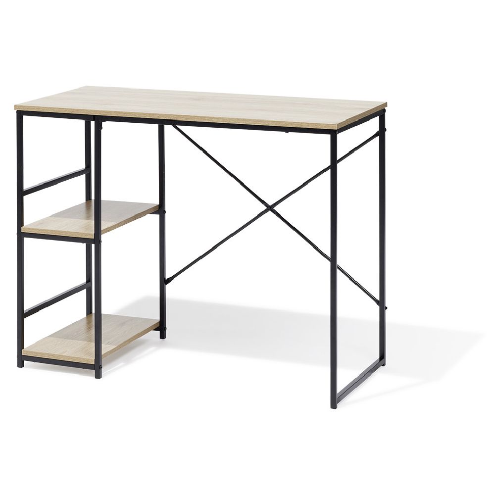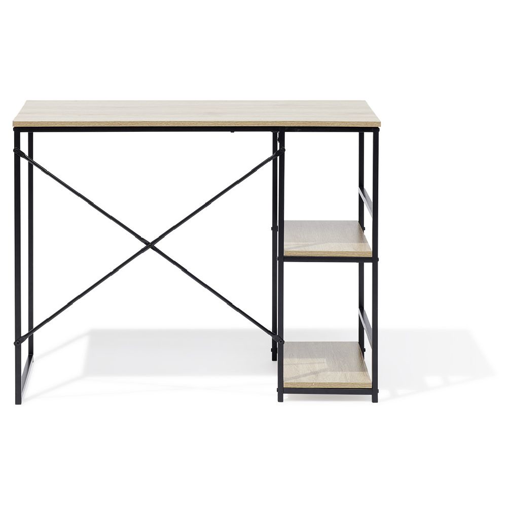 Me dizajnin e tij me dy materiale: metal të zi dhe dru (MDF), ka dy rafte në anë për të ruajtur dokumentet dhe aksesorët e zyrës.