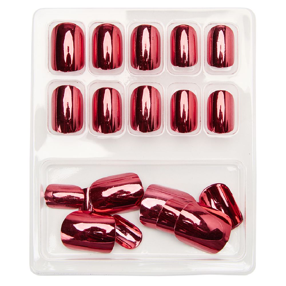 Kit për thonj artificialë akrilikë me efekt pasqyre të kuqe.