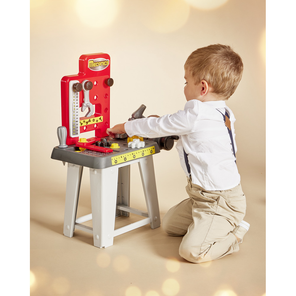 I projektuar për të imituar një hapësirë pune të vërtetë, ky tavolinë pune ofron një përvojë argëtuese dhe interaktive, ideale për entuziastët e rinj të punimeve "bëje vetë" dhe ndërtimit.