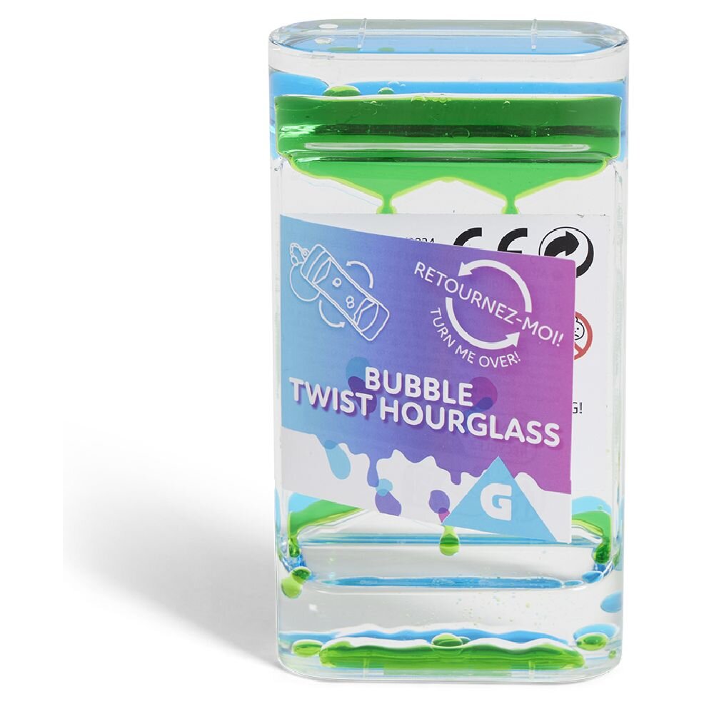E mbushur me lëng shumëngjyrësh, kjo orë me rërë krijon flluska dhe forma argëtuese kur e ktheni nga njëra anë në tjetrën.