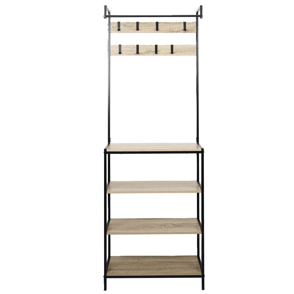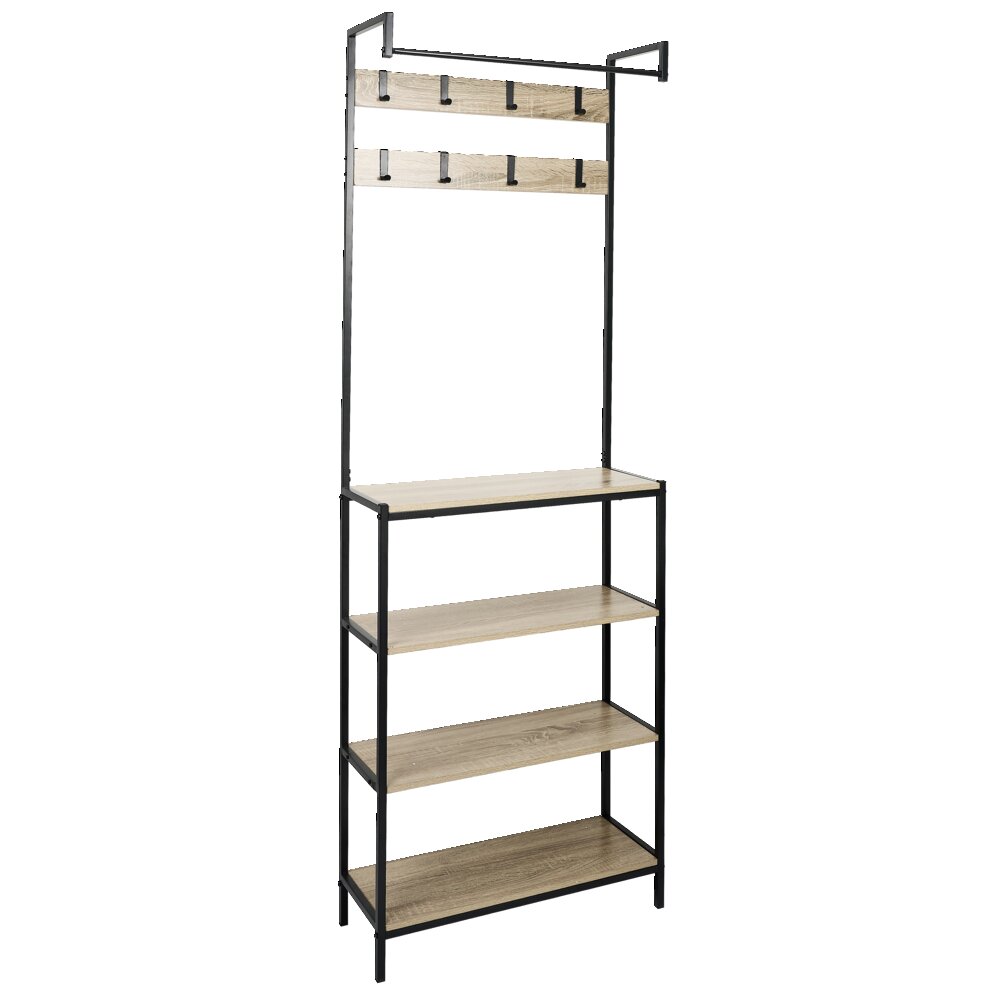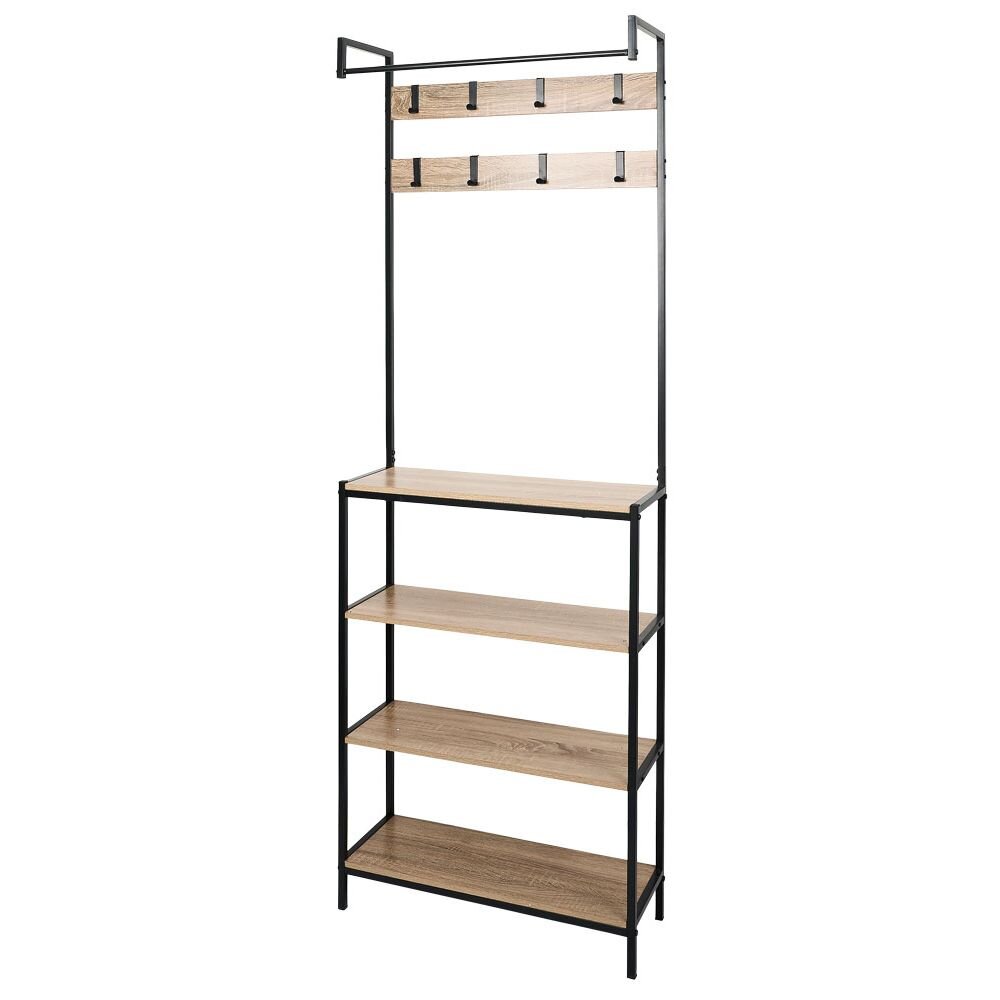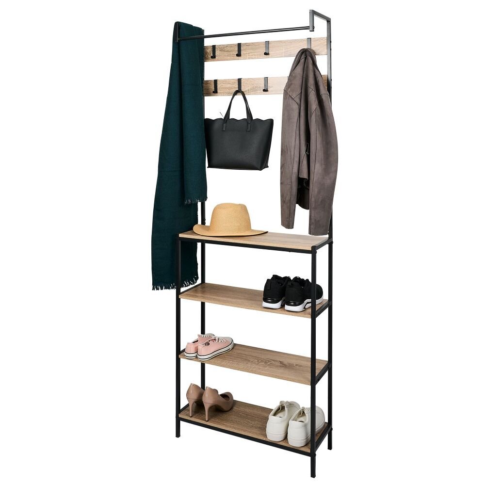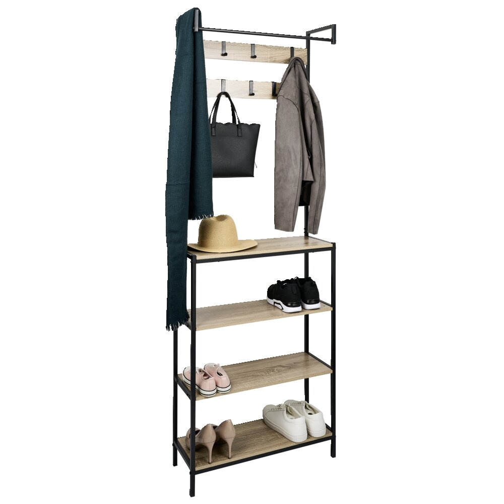 Përmban 8 grepa për varjen e palltove dhe çantave, si dhe 4 rafte që ofrojnë hapësirë ruajtjeje për deri në 9 palë këpucë.