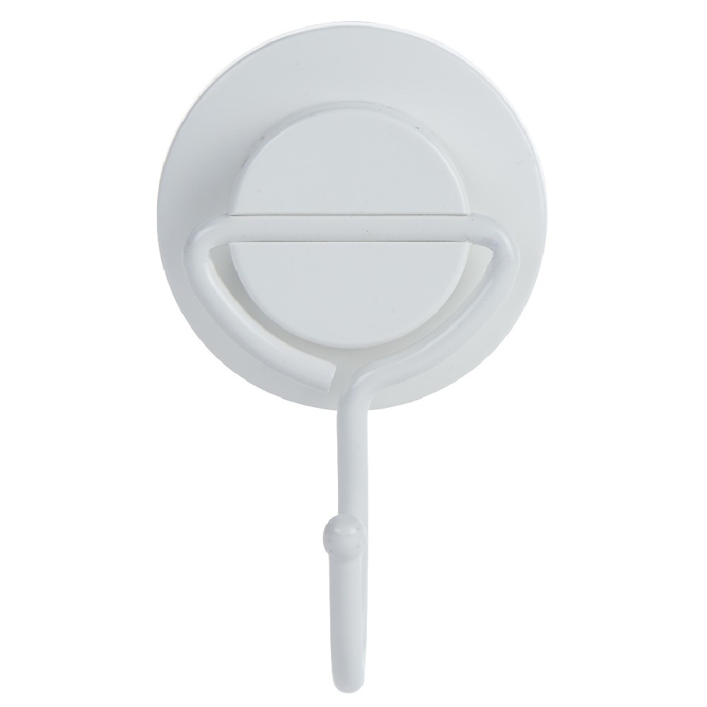 Furnish your bathroom with this white steel coat rack equipped with a hook.