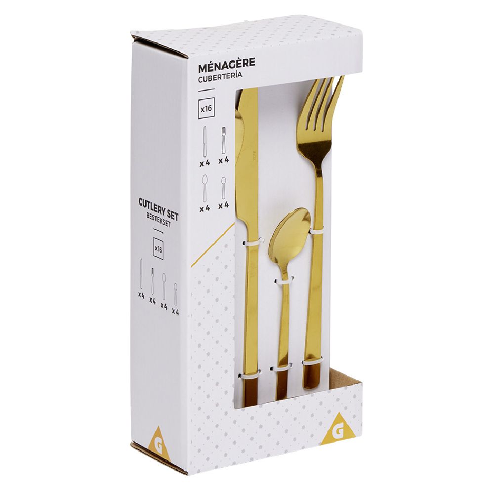 Ideal for a festive dinner, this gold stainless steel cutlery set for 4 people includes: