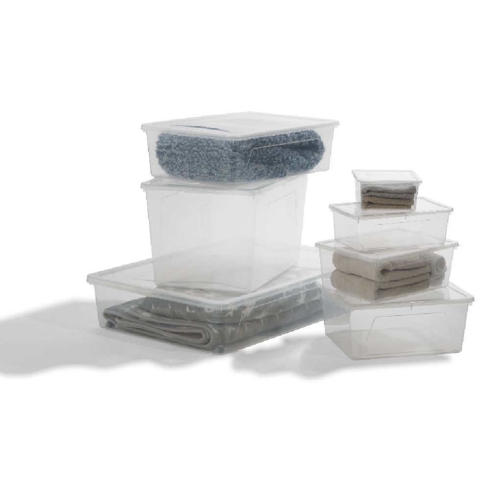 Transparent storage box with lid. This small box is ideal for storing small items lying around or textiles .