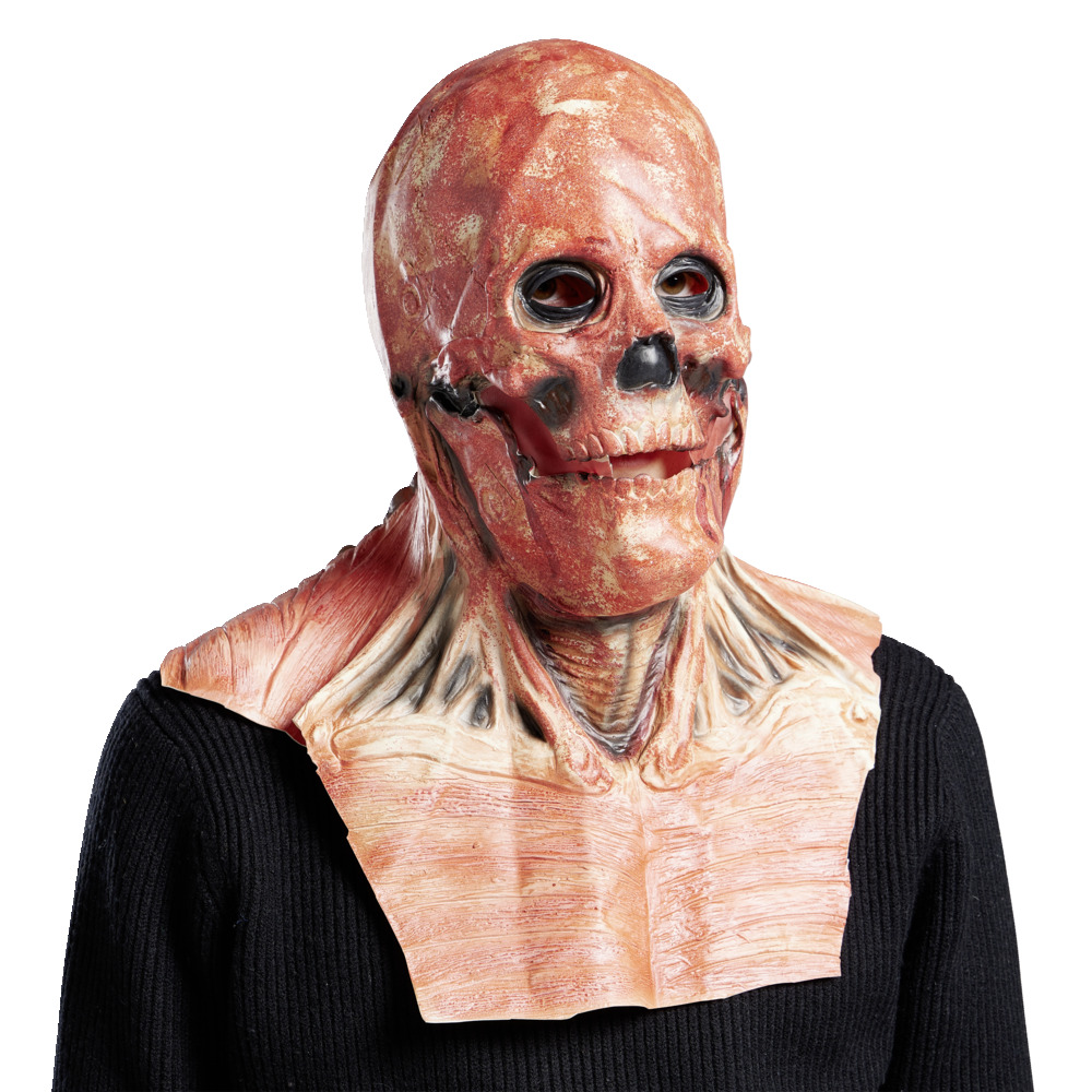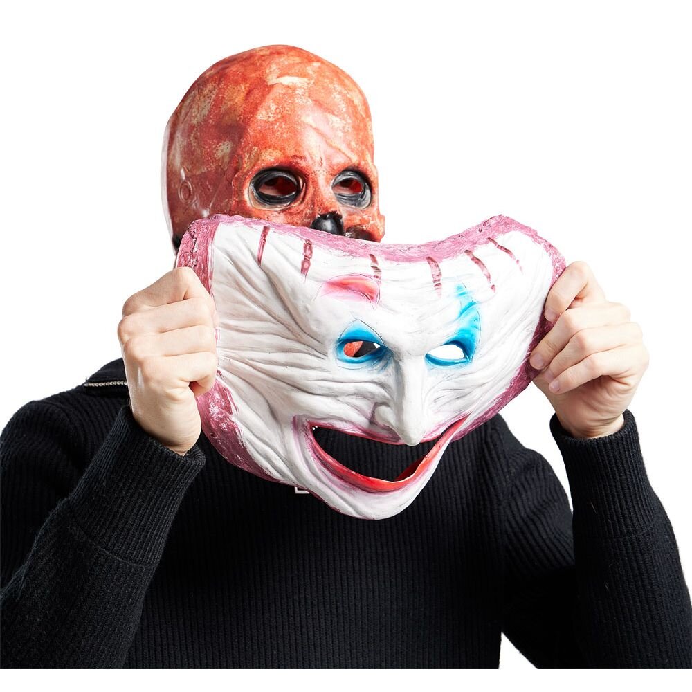 But the real thrill is revealed when the outer mask is removed: beneath, a dismembered, bloody face reveals an even more intense horror.