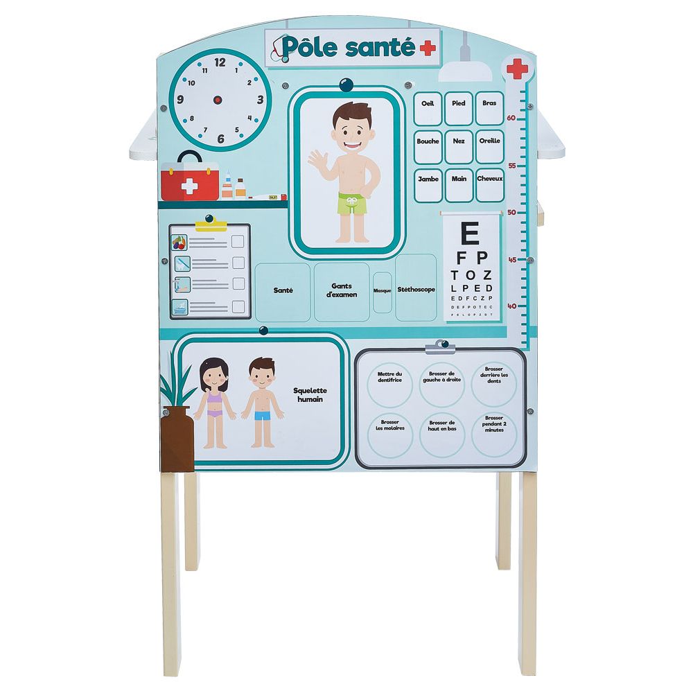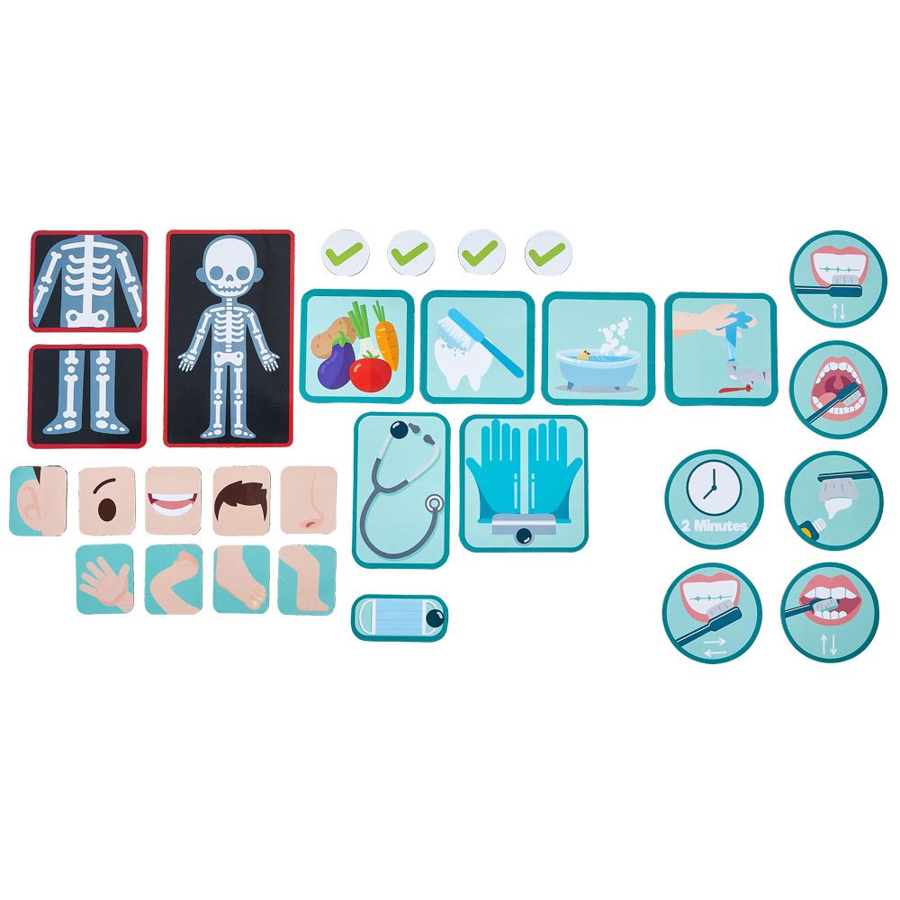 - Back: Magnetic activity board on the theme of health with 29 accessories.
