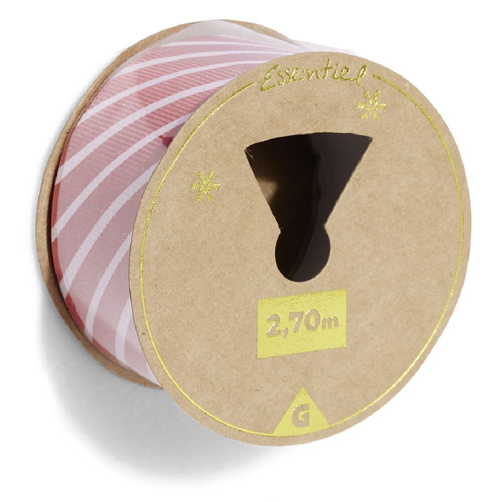 This 2.7-meter roll of red candy cane ribbon is ideal for enhancing your gift packages for Christmas.