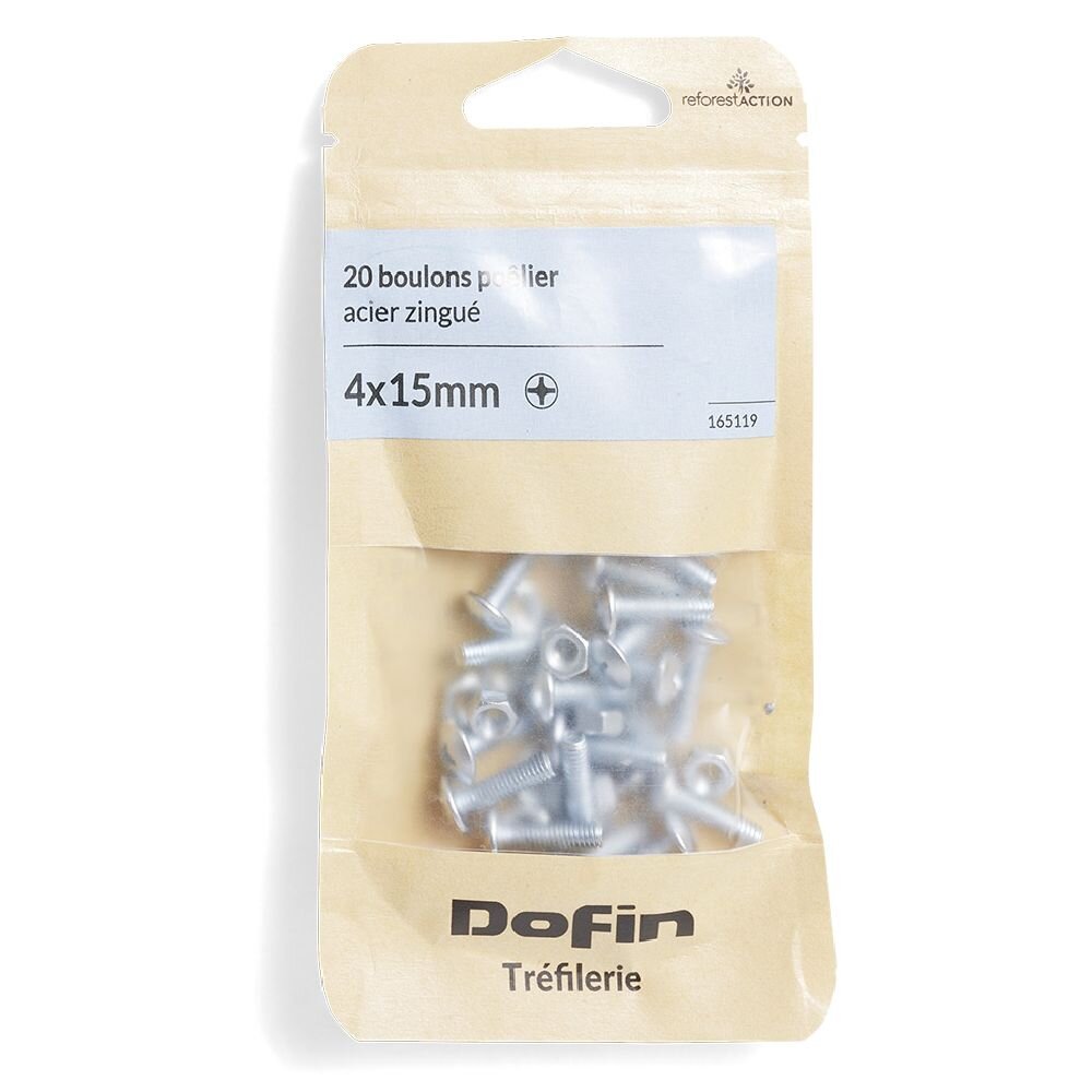 Pack of 20 4 x 15mm zinc-plated steel stove bolts. Ideal for your indoor and outdoor fastening and assembly work.