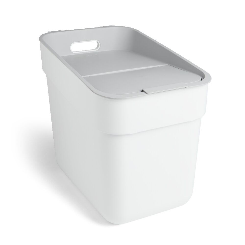 Optimize your sorting with this white bin with a light gray lid, a practical and aesthetic choice.