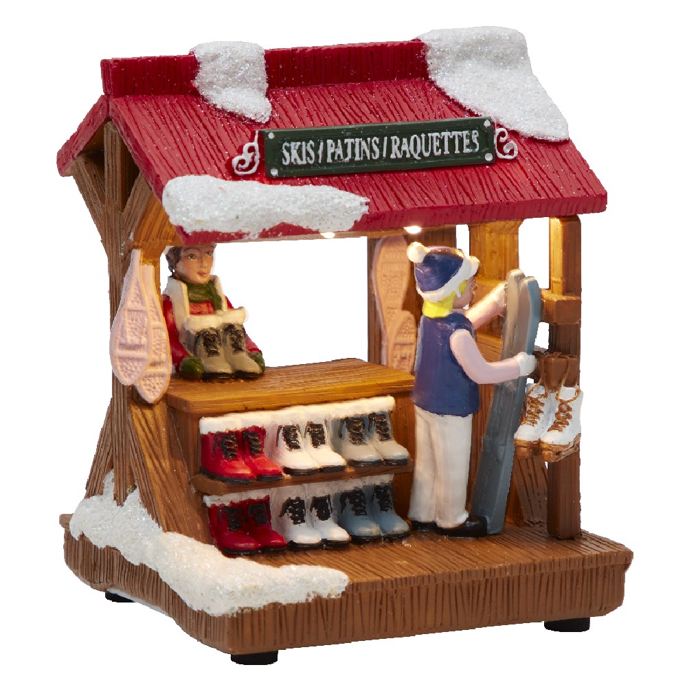 This pretty light scene representing a stand of skis, skates, snowshoes illuminated by 3 LEDs will perfectly complement your Christmas decoration.