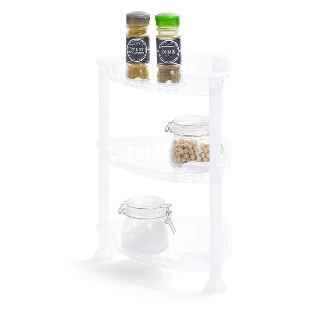 Simplify and optimize your storage with this 3-tier corner shelf for your worktop, office, or bathroom. This versatile shelf is made of transparent plastic, making it easy to install on any piece of furniture in your home.