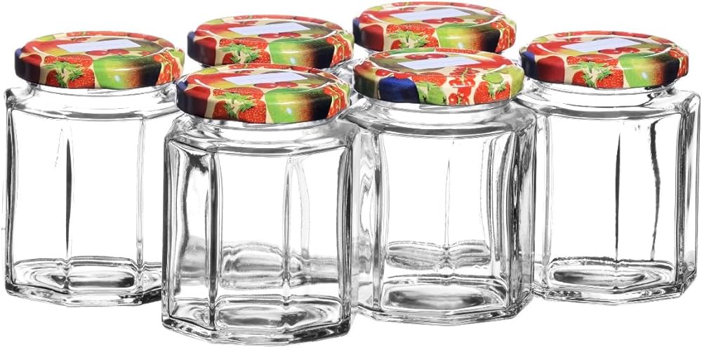 Set of 4 faceted glass jars with a capacity of 32.4 cl, ideal for storing your jams and other preserves!