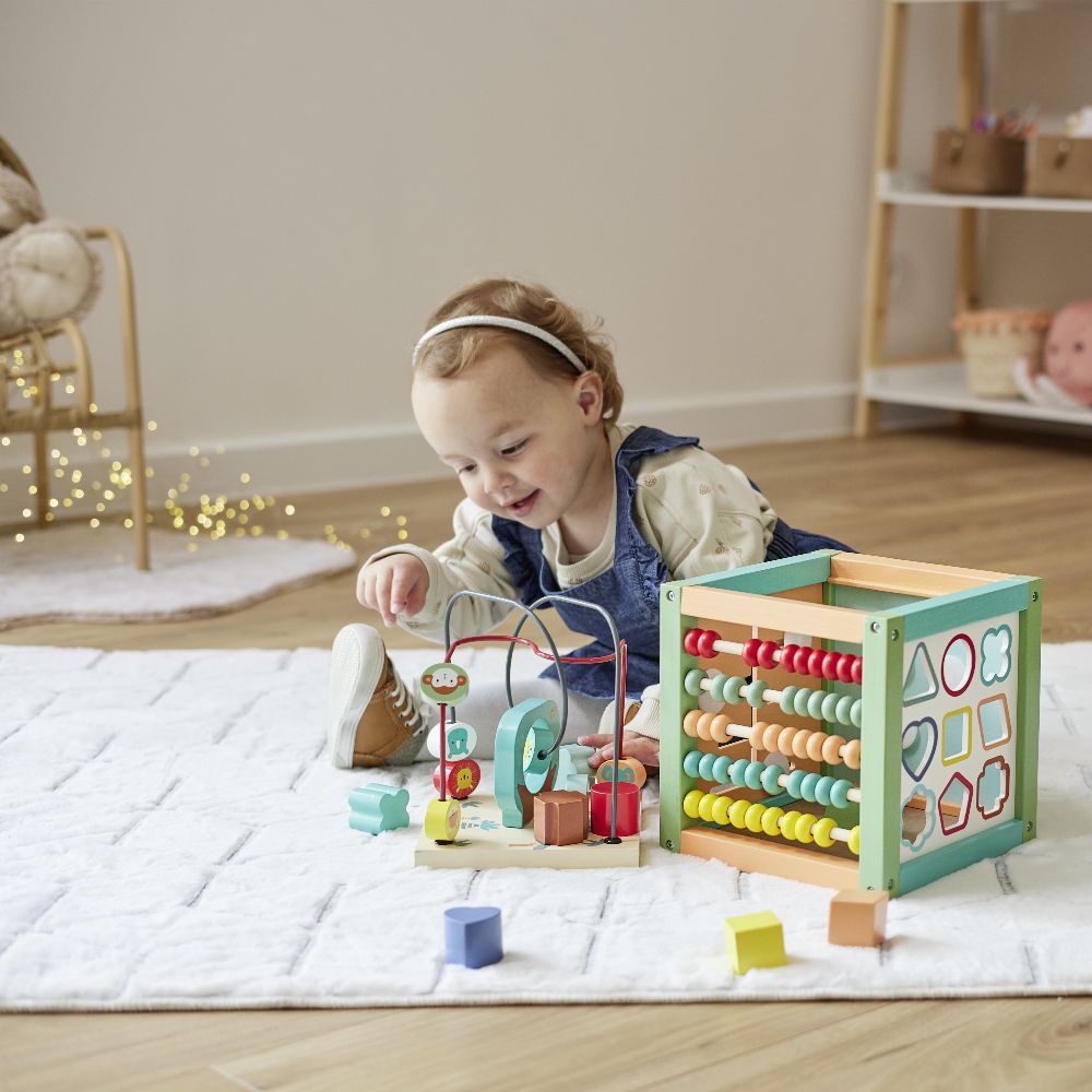 This 5-in-1 activity cube is ideal for stimulating your child from 12 months.